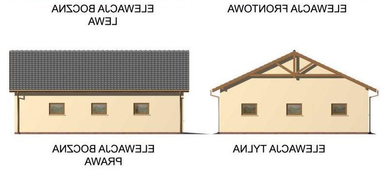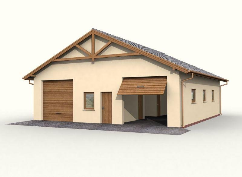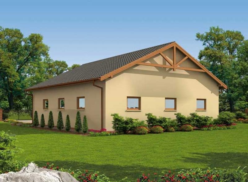 Budynek gospodarczy, wolnostojący. Projekt składa się z części architektonicznej, konstrukcyjnej i wewnętrznej instalacji elektrycznej. W projekcie załączone są podstawowe zestawienie stali, drewna i stolarki okienno-drzwiowej. Do projektu dołączamy bezpłatną zgodę na wprowadzenie zmian, oświadczenie projektantów o wykonaniu projektu zgodnie z obowiązującymi normami i przepisami oraz kserokopie uprawnień projektantów wraz z aktualnym wpisem do izby. W przypadku zamówienia projektu w technologii lekkiej, drewnianej konstrukcji szkieletowej, powierzchnia użytkowa budynku jest o około 7% większa.