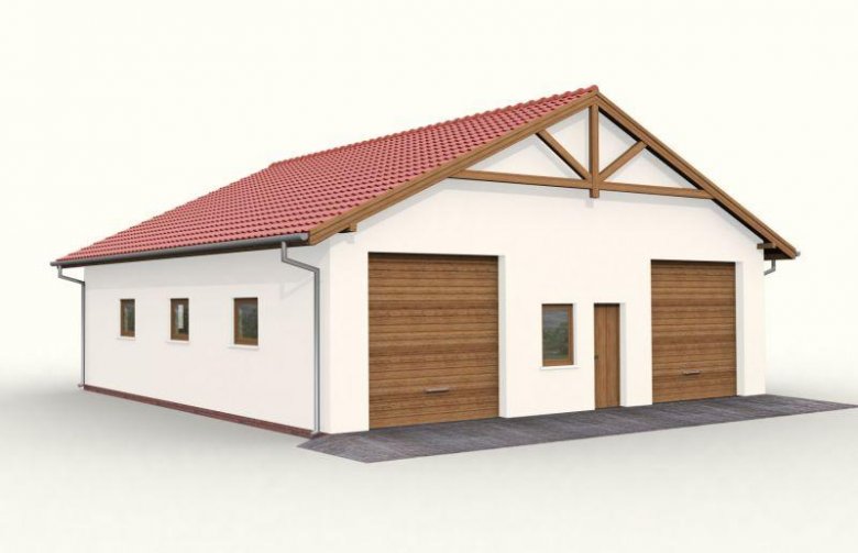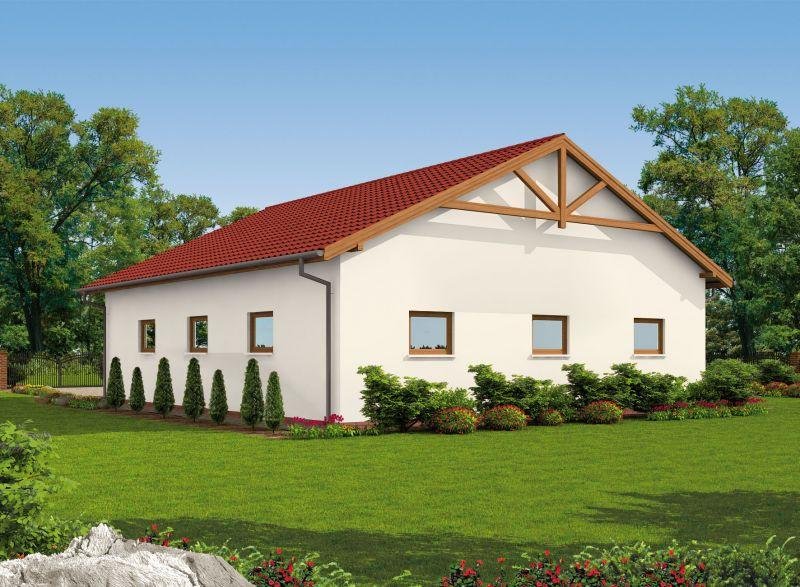 Budynek gospodarczy, wolnostojący. Projekt składa się z części architektonicznej, konstrukcyjnej i wewnętrznej instalacji elektrycznej. W projekcie załączone są podstawowe zestawienie stali, drewna i stolarki okienno-drzwiowej. Do projektu dołączamy bezpłatną zgodę na wprowadzenie zmian, oświadczenie projektantów o wykonaniu projektu zgodnie z obowiązującymi normami i przepisami oraz kserokopie uprawnień projektantów wraz z aktualnym wpisem do izby. W przypadku zamówienia projektu w technologii lekkiej, drewnianej konstrukcji szkieletowej, powierzchnia użytkowa budynku jest o około 7% większa.