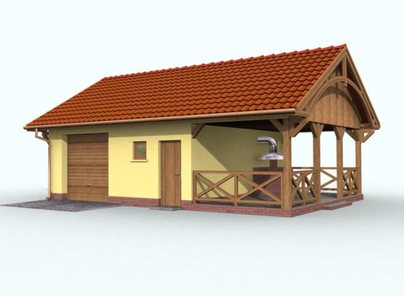 Budynek gospodarczy, wolnostojący. Projekt składa się z części architektonicznej, konstrukcyjnej i wewnętrznej instalacji elektrycznej. W projekcie załączone są podstawowe zestawienie stali, drewna i stolarki okienno-drzwiowej. Do projektu dołączamy bezpłatną zgodę na wprowadzenie zmian, oświadczenie projektantów o wykonaniu projektu zgodnie z obowiązującymi normami i przepisami oraz kserokopie uprawnień projektantów wraz z aktualnym wpisem do izby. W przypadku zamówienia projektu w technologii lekkiej, drewnianej konstrukcji szkieletowej, powierzchnia użytkowa budynku jest o około 7% większa.
