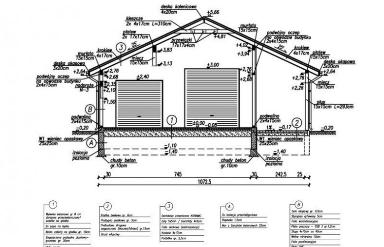 Projekt garażu składa się z czterech egzemplarzy a w tym części architektonicznej, konstrukcyjnej i instalacji wewnętrznej elektrycznej. W projekcie załączone są podstawowe zestawienie stali, drewna i stolarki okienno-drzwiowej. Do projektu dołączamy bezpłatną zgodę na wprowadzenie zmian, oświadczenie projektantów o wykonaniu projektu zgodnie z obowiązującymi normami i przepisami oraz kserokopie uprawnień projektantów wraz z aktualnym wpisem do izby.