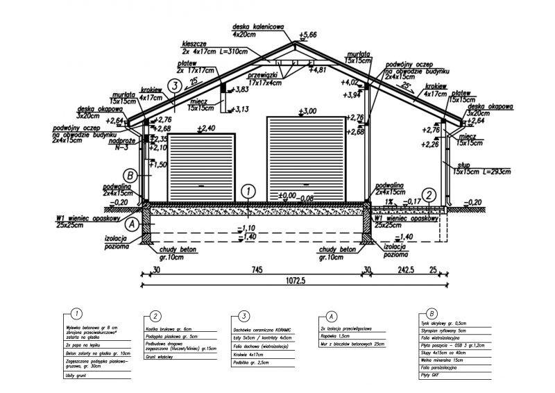 Budynek gospodarczy, wolnostojący. Projekt składa się z części architektonicznej, konstrukcyjnej i wewnętrznej instalacji elektrycznej. W projekcie załączone są podstawowe zestawienie stali, drewna i stolarki okienno-drzwiowej. Do projektu dołączamy bezpłatną zgodę na wprowadzenie zmian, oświadczenie projektantów o wykonaniu projektu zgodnie z obowiązującymi normami i przepisami oraz kserokopie uprawnień projektantów wraz z aktualnym wpisem do izby. W przypadku zamówienia projektu w technologii lekkiej, drewnianej konstrukcji szkieletowej, powierzchnia użytkowa budynku jest o około 7% większa.