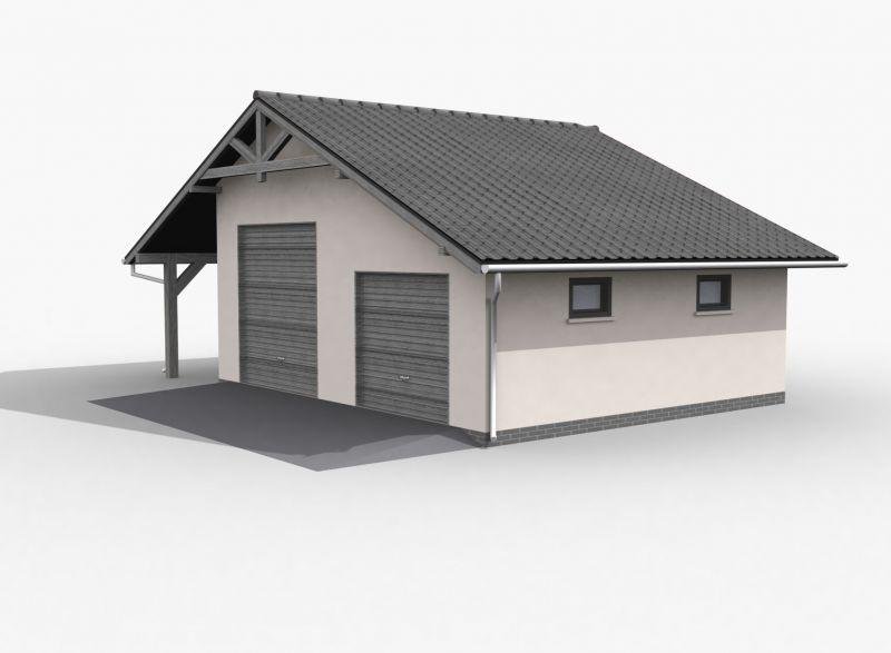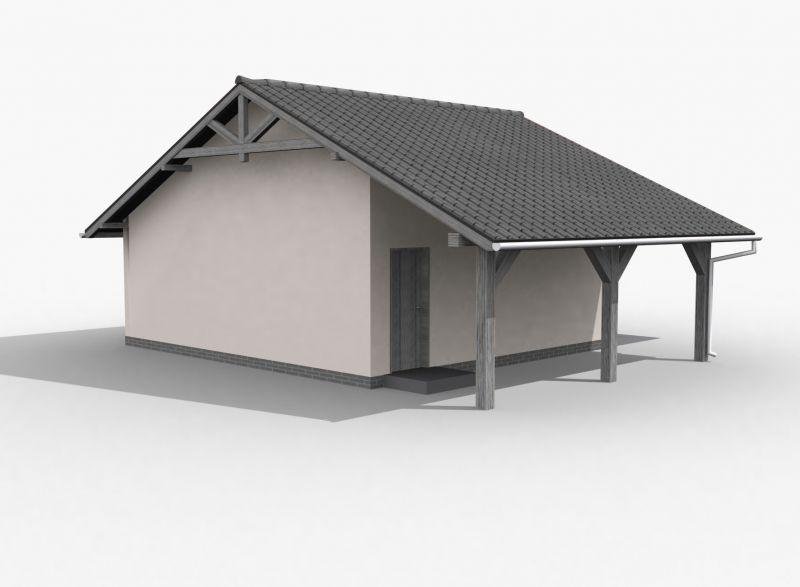 Budynek gospodarczy, wolnostojący. Projekt składa się z części architektonicznej, konstrukcyjnej i wewnętrznej instalacji elektrycznej. W projekcie załączone są podstawowe zestawienie stali, drewna i stolarki okienno-drzwiowej. Do projektu dołączamy bezpłatną zgodę na wprowadzenie zmian, oświadczenie projektantów o wykonaniu projektu zgodnie z obowiązującymi normami i przepisami oraz kserokopie uprawnień projektantów wraz z aktualnym wpisem do izby. W przypadku zamówienia projektu w technologii lekkiej, drewnianej konstrukcji szkieletowej, powierzchnia użytkowa budynku jest o około 7% większa.