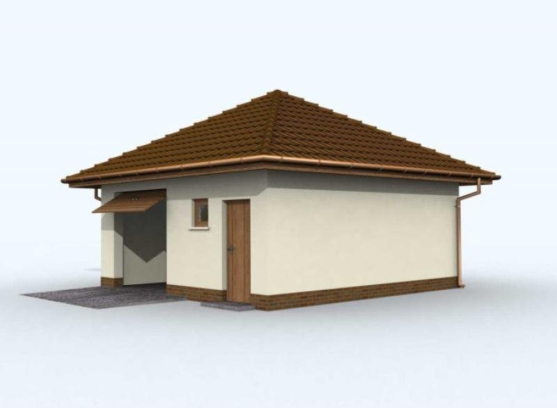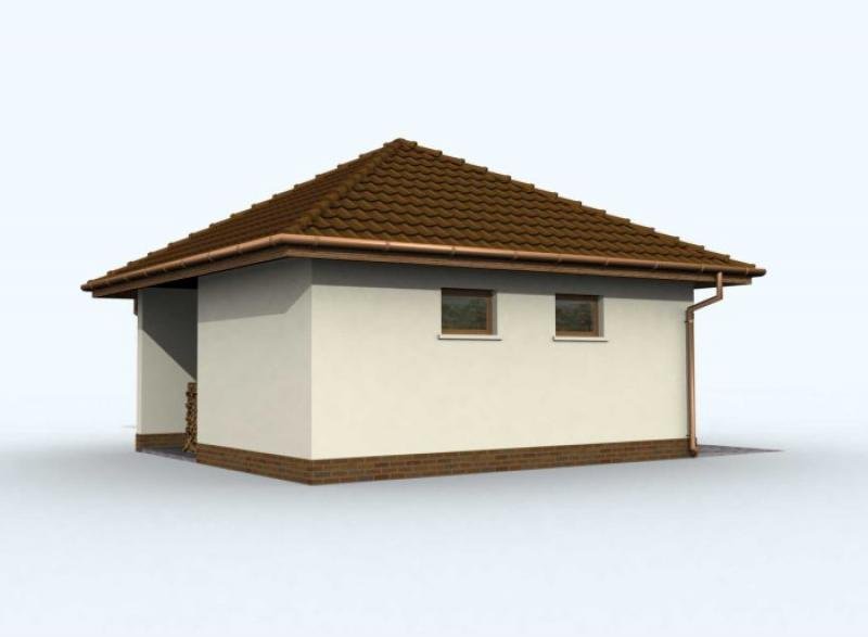Garaż jednostanowiskowy z pomieszczeniem gospodarczym i składem na drewno.