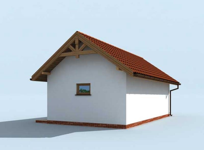 Budynek gospodarczy, wolnostojący. Projekt składa się z części architektonicznej, konstrukcyjnej i wewnętrznej instalacji elektrycznej. W projekcie załączone są podstawowe zestawienie stali, drewna i stolarki okienno-drzwiowej. Do projektu dołączamy bezpłatną zgodę na wprowadzenie zmian, oświadczenie projektantów o wykonaniu projektu zgodnie z obowiązującymi normami i przepisami oraz kserokopie uprawnień projektantów wraz z aktualnym wpisem do izby. W przypadku zamówienia projektu w technologii lekkiej, drewnianej konstrukcji szkieletowej, powierzchnia użytkowa budynku jest o około 7% większa.