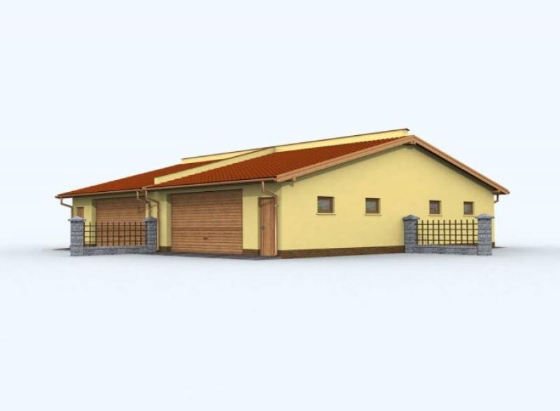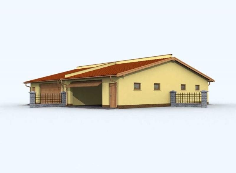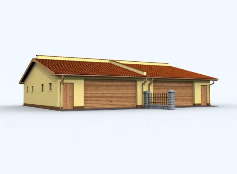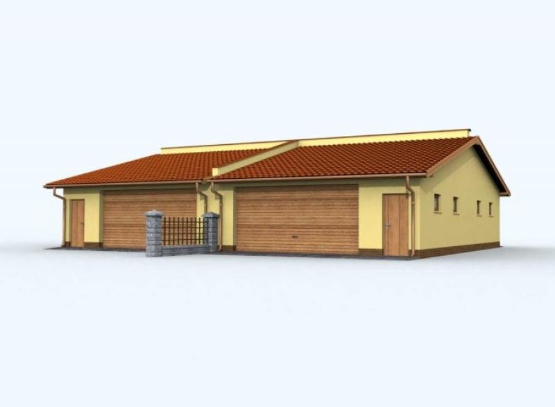 Budynek gospodarczy, wolnostojący. Projekt składa się z części architektonicznej, konstrukcyjnej i wewnętrznej instalacji elektrycznej. W projekcie załączone są podstawowe zestawienie stali, drewna i stolarki okienno-drzwiowej. Do projektu dołączamy bezpłatną zgodę na wprowadzenie zmian, oświadczenie projektantów o wykonaniu projektu zgodnie z obowiązującymi normami i przepisami oraz kserokopie uprawnień projektantów wraz z aktualnym wpisem do izby. W przypadku zamówienia projektu w technologii lekkiej, drewnianej konstrukcji szkieletowej, powierzchnia użytkowa budynku jest o około 7% większa.
