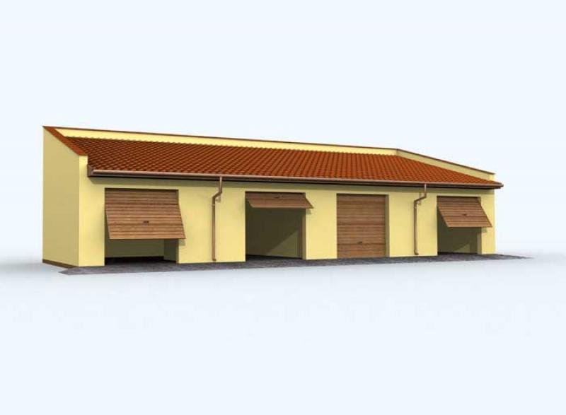 Budynek gospodarczy, wolnostojący. Projekt składa się z części architektonicznej, konstrukcyjnej i wewnętrznej instalacji elektrycznej. W projekcie załączone są podstawowe zestawienie stali, drewna i stolarki okienno-drzwiowej. Do projektu dołączamy bezpłatną zgodę na wprowadzenie zmian, oświadczenie projektantów o wykonaniu projektu zgodnie z obowiązującymi normami i przepisami oraz kserokopie uprawnień projektantów wraz z aktualnym wpisem do izby. W przypadku zamówienia projektu w technologii lekkiej, drewnianej konstrukcji szkieletowej, powierzchnia użytkowa budynku jest o około 7% większa.