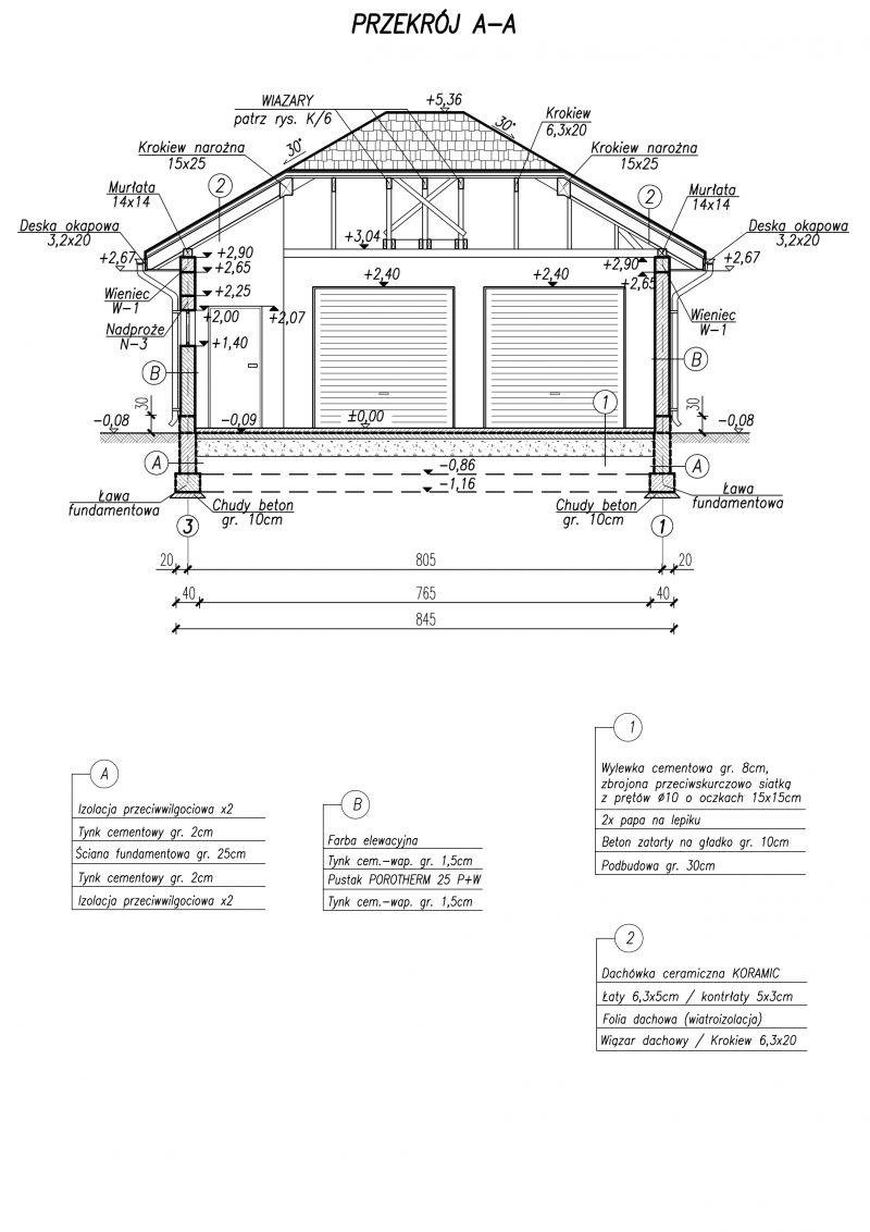 Budynek gospodarczy, wolnostojący. Projekt składa się z części architektonicznej, konstrukcyjnej i wewnętrznej instalacji elektrycznej. W projekcie załączone są podstawowe zestawienie stali, drewna i stolarki okienno-drzwiowej. Do projektu dołączamy bezpłatną zgodę na wprowadzenie zmian, oświadczenie projektantów o wykonaniu projektu zgodnie z obowiązującymi normami i przepisami oraz kserokopie uprawnień projektantów wraz z aktualnym wpisem do izby. W przypadku zamówienia projektu w technologii lekkiej, drewnianej konstrukcji szkieletowej, powierzchnia użytkowa budynku jest o około 7% większa.