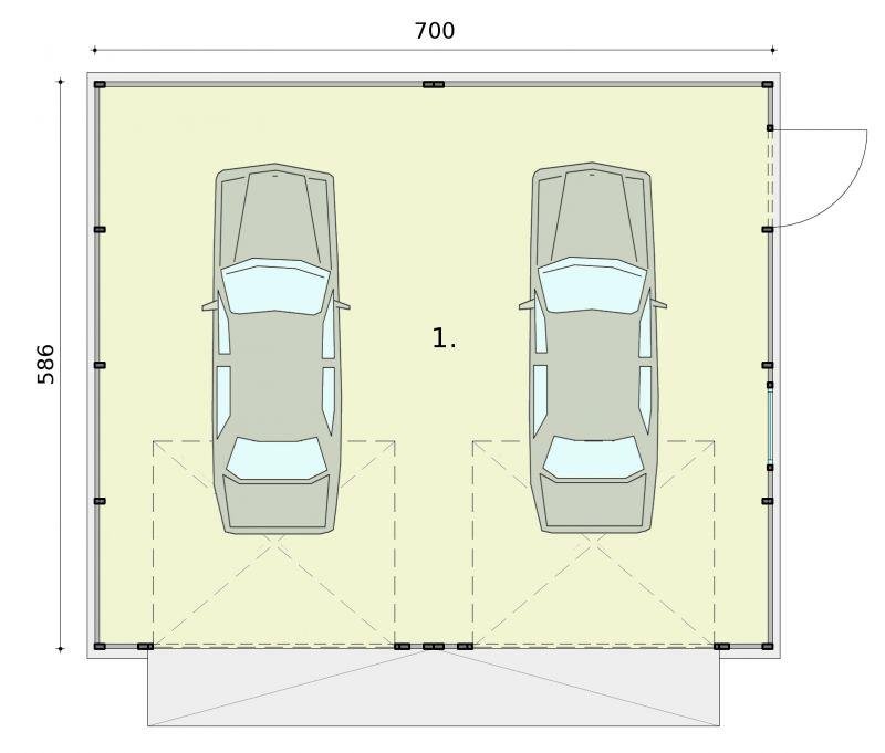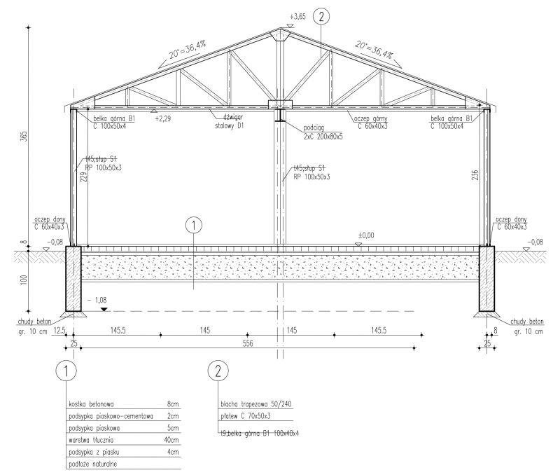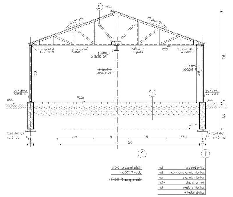 Budynek gospodarczy, wolnostojący. Projekt składa się z części architektonicznej, konstrukcyjnej i wewnętrznej instalacji elektrycznej. W projekcie załączone są podstawowe zestawienie stali, drewna i stolarki okienno-drzwiowej. Do projektu dołączamy bezpłatną zgodę na wprowadzenie zmian, oświadczenie projektantów o wykonaniu projektu zgodnie z obowiązującymi normami i przepisami oraz kserokopie uprawnień projektantów wraz z aktualnym wpisem do izby. W przypadku zamówienia projektu w technologii lekkiej, drewnianej konstrukcji szkieletowej, powierzchnia użytkowa budynku jest o około 7% większa.