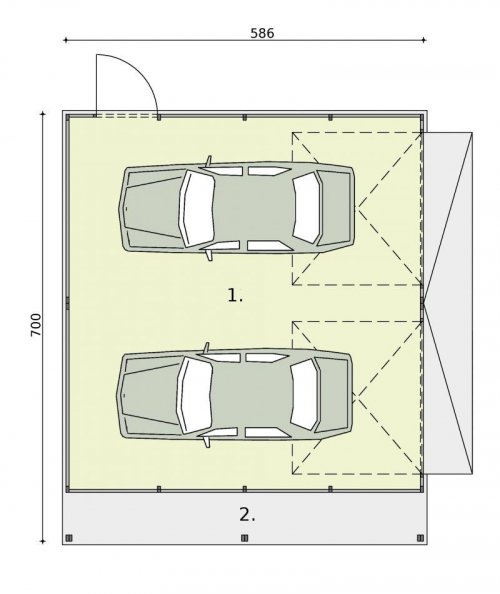 Budynek gospodarczy, wolnostojący. Projekt składa się z części architektonicznej, konstrukcyjnej i wewnętrznej instalacji elektrycznej. W projekcie załączone są podstawowe zestawienie stali, drewna i stolarki okienno-drzwiowej. Do projektu dołączamy bezpłatną zgodę na wprowadzenie zmian, oświadczenie projektantów o wykonaniu projektu zgodnie z obowiązującymi normami i przepisami oraz kserokopie uprawnień projektantów wraz z aktualnym wpisem do izby. W przypadku zamówienia projektu w technologii lekkiej, drewnianej konstrukcji szkieletowej, powierzchnia użytkowa budynku jest o około 7% większa.