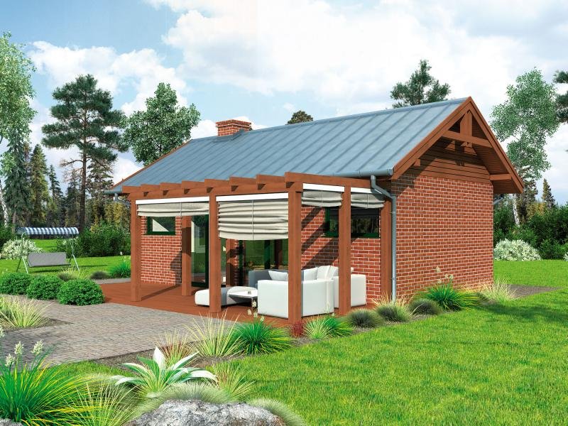 Projekt składa się z części architektonicznej, konstrukcyjnej, wewnętrznej instalacji elektrycznej i sanitarnej. W projekcie załączone są podstawowe zestawienie stali, drewna i stolarki okienno-drzwiowej. Do projektu dołączamy bezpłatną zgodę na wprowadzenie zmian, oświadczenie projektantów o wykonaniu projektu zgodnie z obowiązującymi normami i przepisami oraz kserokopie uprawnień projektantów wraz z aktualnym wpisem do izby. W przypadku zamówienia projektu w technologii lekkiej, drewnianej konstrukcji szkieletowej, powierzchnia użytkowa budynku jest o około 7% większa.KL14 kuchnia letnia z WC, sypialnią i pomieszczeniem gospodarczym.