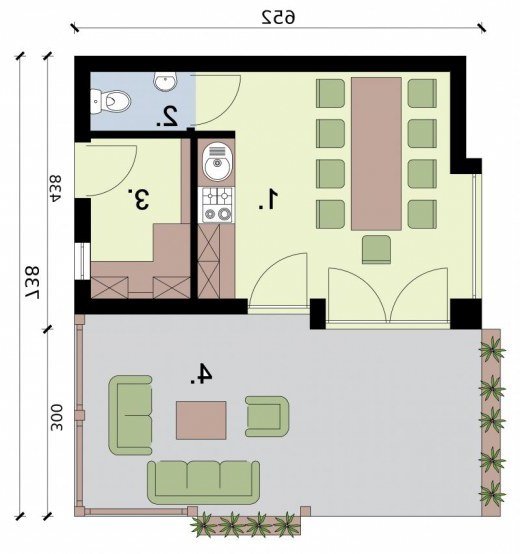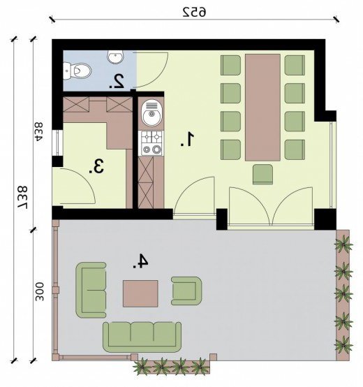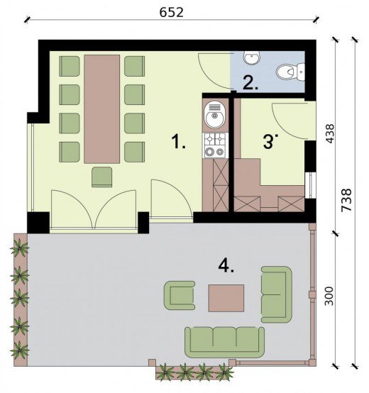 KL5 kuchnia letnia z pom. gospodarczym, WC i tarasem