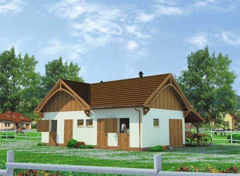 Projekt stajni dla koni. Projekt stajni składa się z czterech egzemplarzy a w tym części architektonicznej, konstrukcyjnej i instalacji wewnętrznej elektrycznej. W projekcie załączone są podstawowe zestawienie stali, drewna i stolarki okienno-drzwiowej. Do projektu dołączamy bezpłatną zgodę na wprowadzenie zmian, oświadczenie projektantów o wykonaniu projektu zgodnie z obowiązującymi normami i przepisami oraz kserokopie uprawnień projektantów wraz z aktualnym wpisem do izby.
