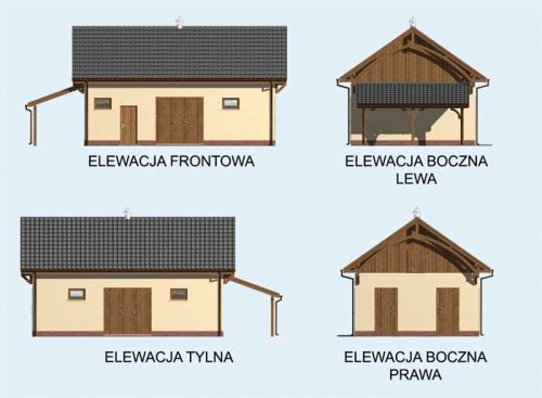 Projekt stajni składa się z czterech egzemplarzy a w tym części architektonicznej, konstrukcyjnej, wewnętrznych instalacji wod.-kan i instalacji wewnętrznej elektrycznej. W projekcie załączone są podstawowe zestawienie stali, drewna i stolarki okienno-drzwiowej. Do projektu dołączamy bezpłatną zgodę na wprowadzenie zmian, oświadczenie projektantów o wykonaniu projektu zgodnie z obowiązującymi normami i przepisami oraz kserokopie uprawnień projektantów wraz z aktualnym wpisem do izby. Szerokość komunikacji : 2,8 m Wymiary boksów: 3 m x 3,5 m W łazience zastosowano przepływowy podgrzewacz wody umywalkowo natryskowy.