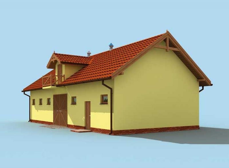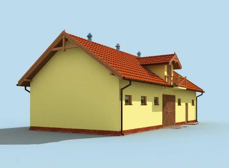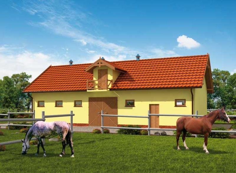 Ten projekt zadowoli wszystkich marzących o przydomowej stajni. Cztery boksy z poidłami, dobre oświetlenie i wentylacja zapewnione przez okna, to standardowe rozwiązania stosowane w naszych stajniach. Obszerna komunikacja z wejściem od południa, paszarnia oraz poddasze do dowolnej adaptacji to wszystkie pomieszczenia tej stajni. Polecamy wszystkim. Projekt stajni składa się z czterech egzemplarzy a w tym części architektonicznej, konstrukcyjnej i instalacji wewnętrznej elektrycznej. W projekcie załączone są podstawowe zestawienie stali, drewna i stolarki okienno-drzwiowej. Do projektu dołączamy bezpłatną zgodę na wprowadzenie zmian, oświadczenie projektantów o wykonaniu projektu zgodnie z obowiązującymi normami i przepisami oraz kserokopie uprawnień projektantów wraz z aktualnym wpisem do izby.