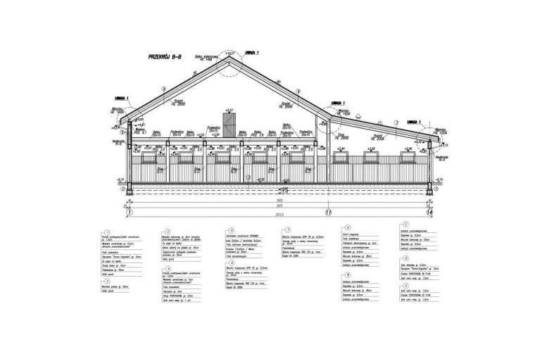 - nad boksami zaprojektowano strop z belek drewnianych o przekroju 10x20cm