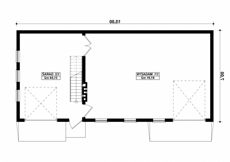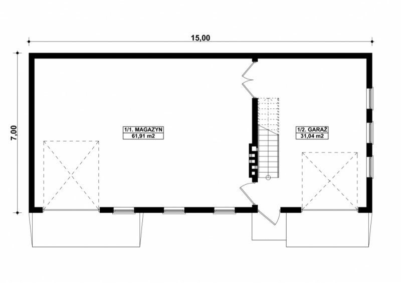 Projekt garażu jednostanowiskowego, parterowego, niepodpiwniczonego z poddaszem użytkowym, przeznaczonego dla samochodów osobowych z pomieszczeniem gospodarczym i magazynem. Do projektu dołączone jest zestawienie: stali, więźby dachowej oraz stolarki drzwiowej i okiennej, jak również bezpłatna zgoda na dokonanie zmian.