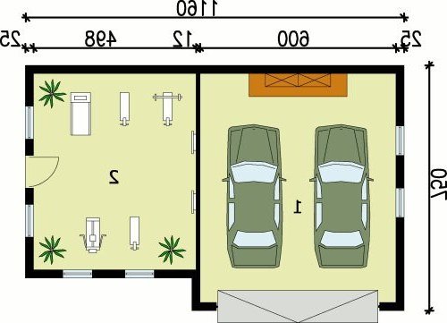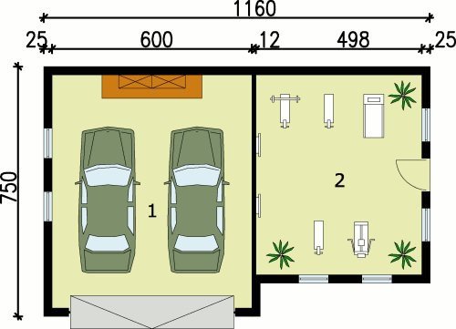 Projekt garażu z pomieszczeniem rekreacyjnym.