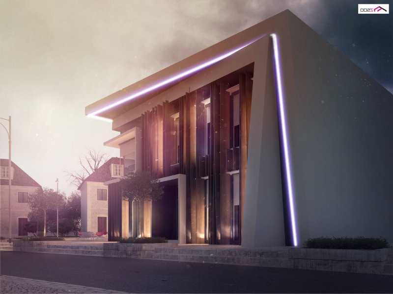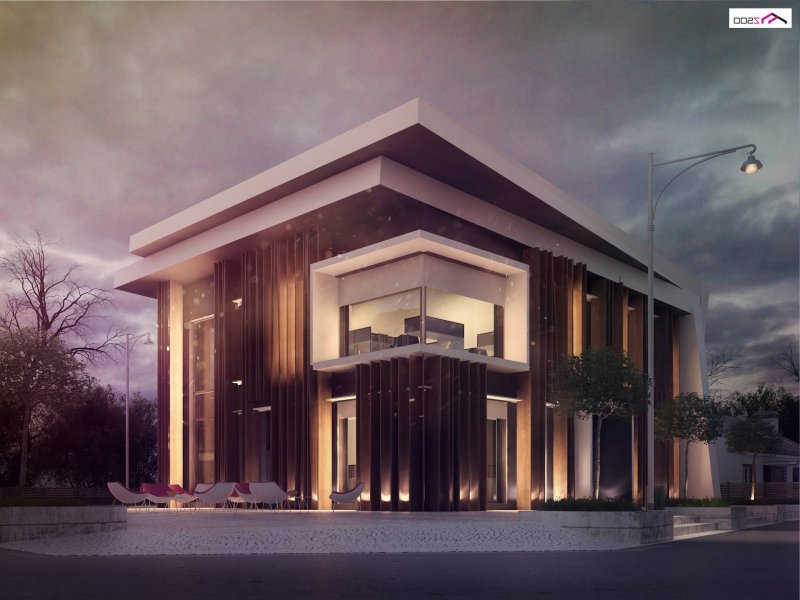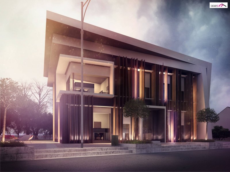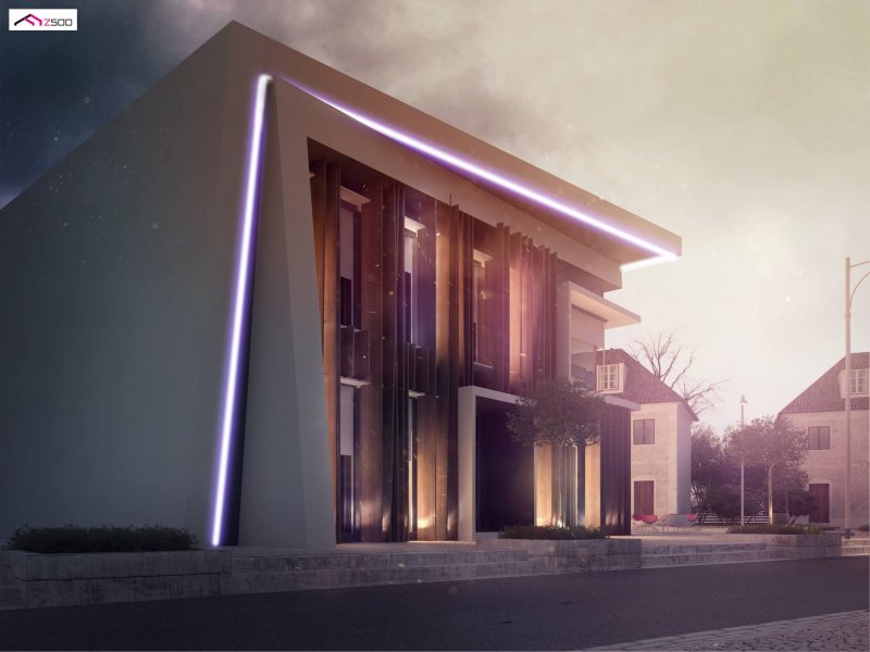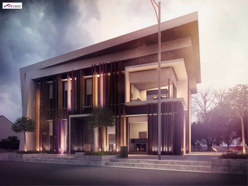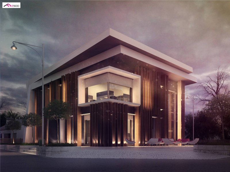 Zu11 to propozycja projektu 2 kondygnacyjnego lokalu biurowo-usługowego, z dużymi przeszkleniami od frontu i z panelami, które mogą służyć jako żaluzje. Dach zaprojektowano jako odwróconą literę „L” geometrycznie przecinających się płaszczyzn.