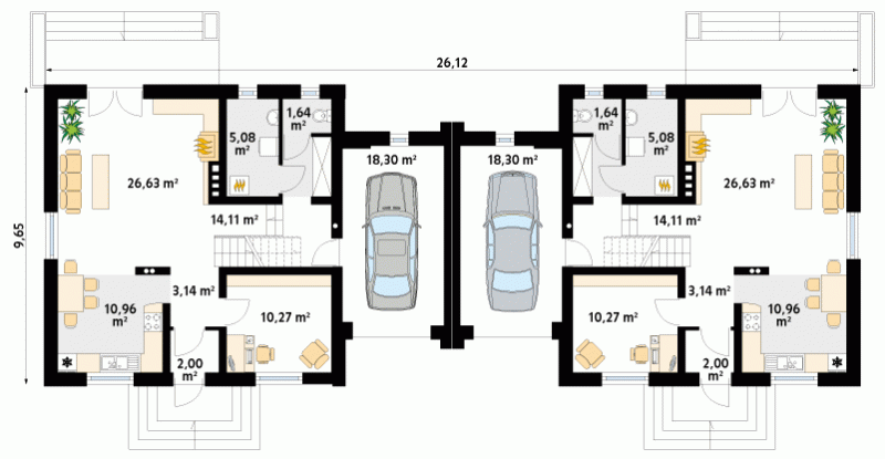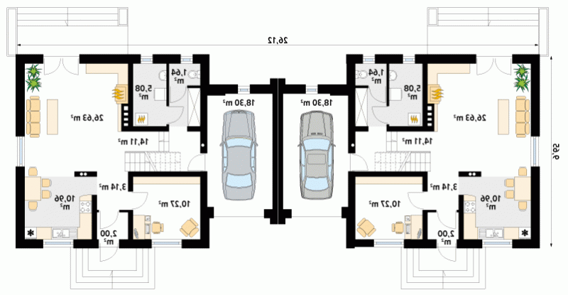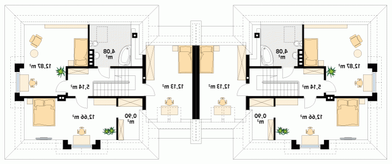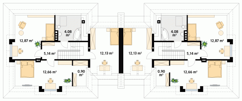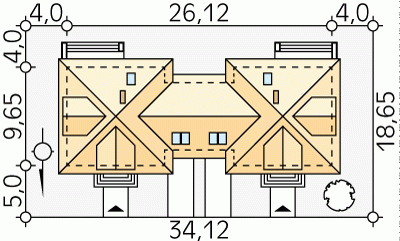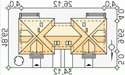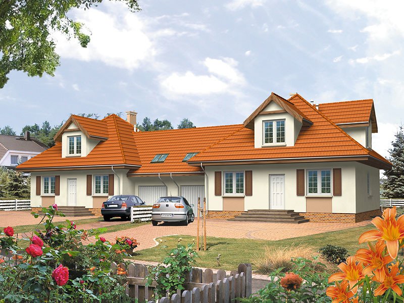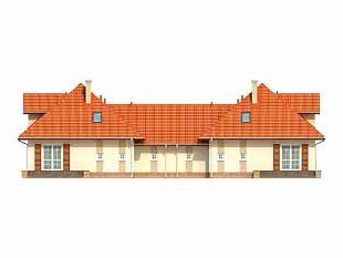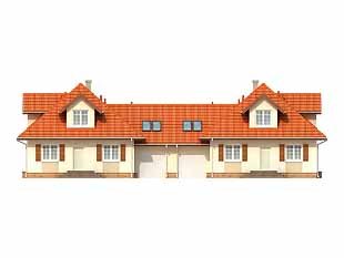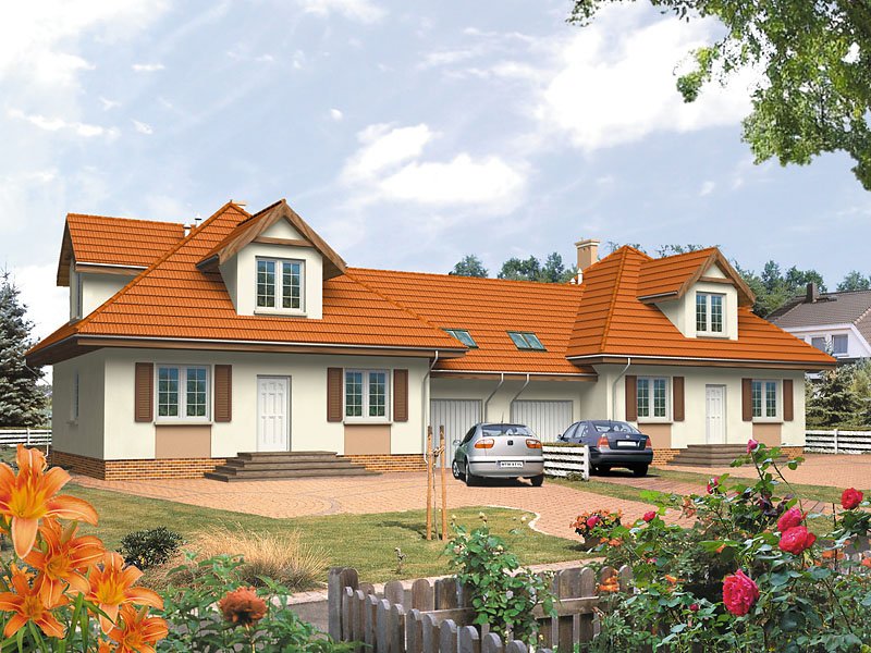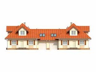 Dom mieszkalny w zabudowie bliźniaczej, niepodpiwniczony. Przeznaczony dla 3 – 4-osobowej rodziny. Prosty dom o nieskomplikowanej bryle i funkcjonalnym wnętrzu.