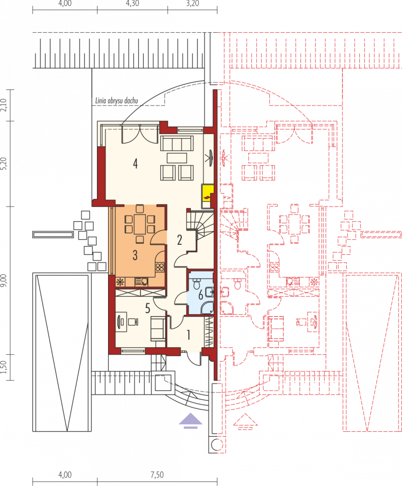 - Kąt nachylenia dachu 39.00°