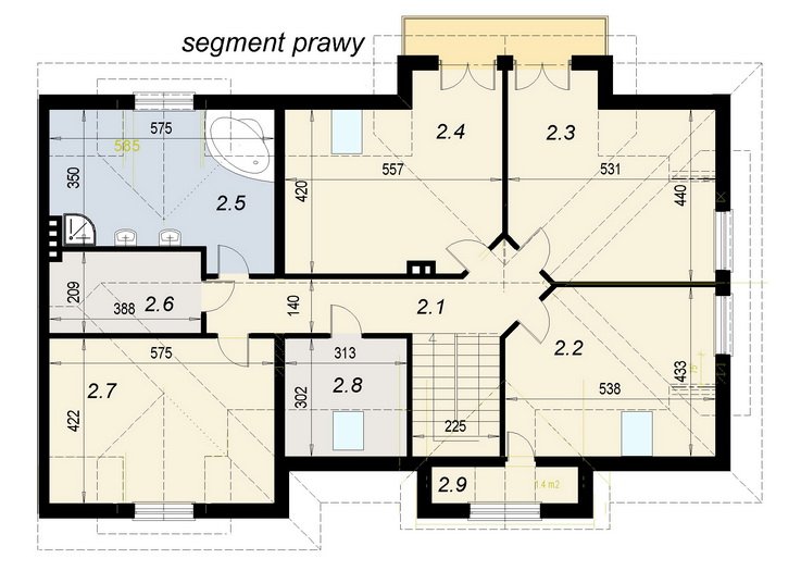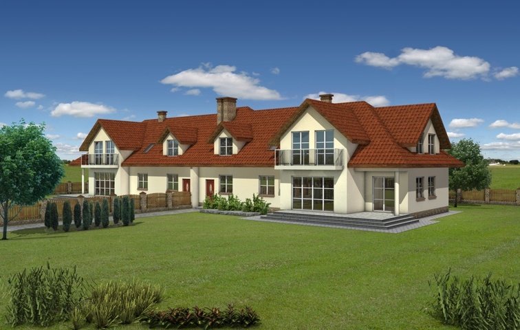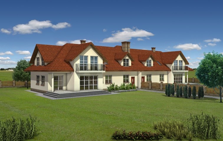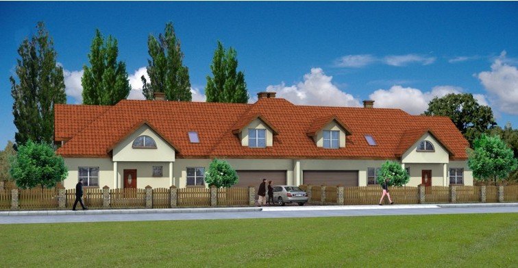 Według opinii wielu Inwestorów jest to jeden z najładniejszych domów bliźniaczych na rynku sprzedawany jako projekt typowy. Został wykonany na indywidualne zamówienie firmy deweloperskiej. Na bazie tego projektu została wybudowana duża część osiedla mieszkaniowego pod Warszawą. Dom spełnia wymagania 5-6 osobowej rodziny. Pomieszczenia wewnątrz są duże i funkcjonalne. Na poddaszu znajdują się duże sypialnie oraz pokój kąpielowy. Dom posiada szeroki garaż dla dwóch samochodów osobowych oraz duże pomieszczenie gospodarcze z wyjściem na ogródek. Polecany na szeroką działkę podmiejską.