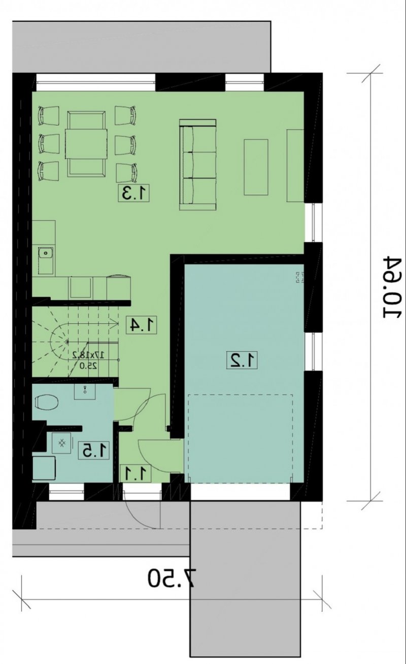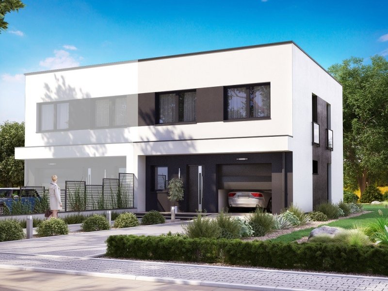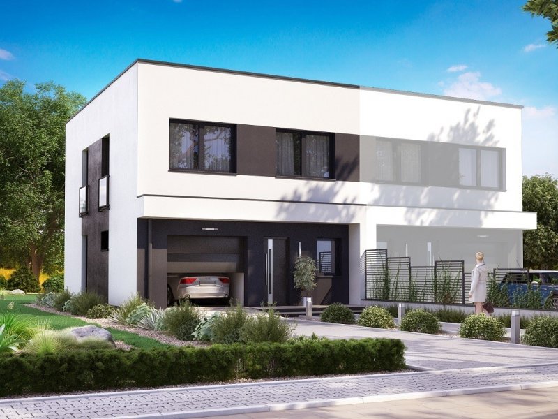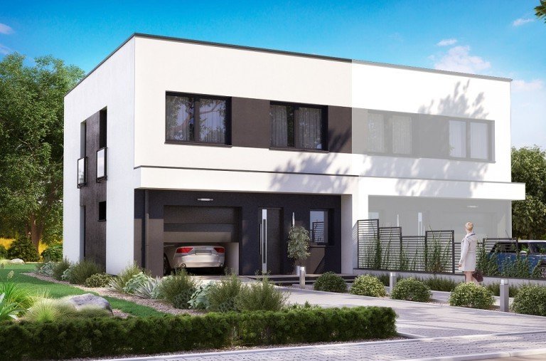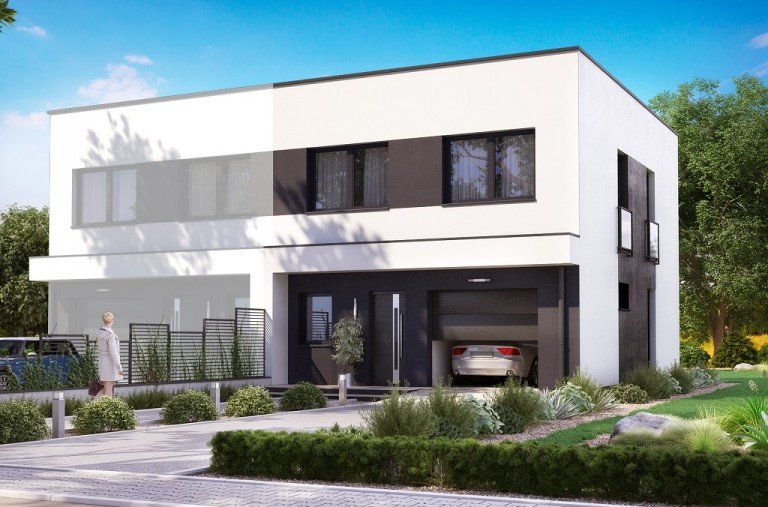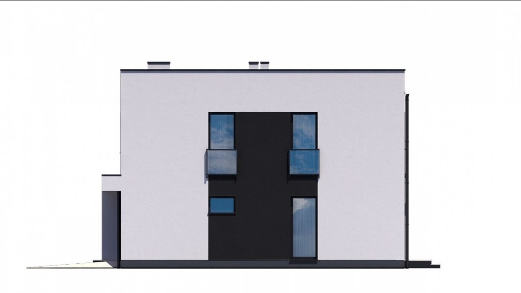 Nowoczesny ekonomiczny budynek mieszkalny na wąską działkę, dla czterosobowej rodziny.