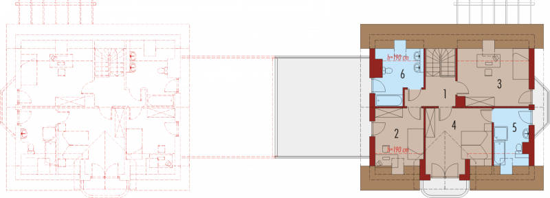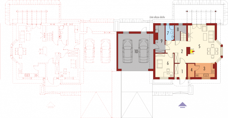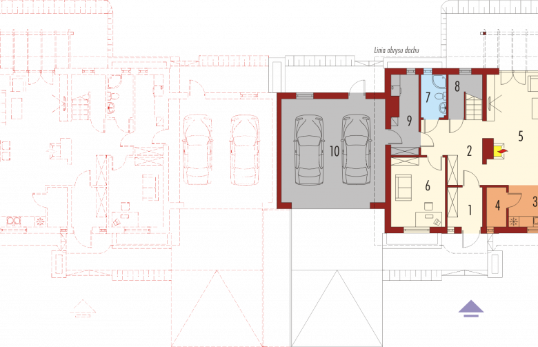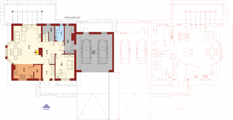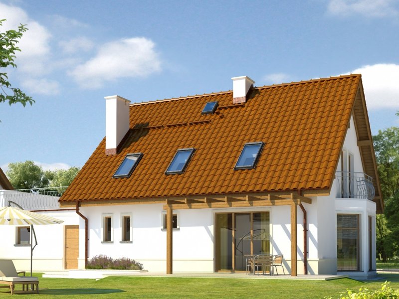 Dom parterowy z poddaszem użytkowym w zabudowie bliźniaczej, niepodpiwniczony, z garażem dwustanowiskowym, przeznaczony dla 4-5-osobowej rodziny. Strefę dzienną tworzy kuchnia ze spiżarnią, jadalnia, przestronny pokój dzienny, gabinet oraz łazienka. Dodatkowo, zaprojektowano także duże pomieszczenie gospodarcze. W strefie nocnej, umiejscowionej na poddaszu, znajdują się trzy sypialnie i dwie duże łazienki, w tym jedna dostępna z sypialni rodziców. Kajka to doskonała propozycja dla wszystkich miłośników klasyki, którzy cenią przytulne wnętrza oraz efektowne formy wykończenia. Dzięki dużej ilości przeszkleń Kajka urzeka swoim jasnym i słonecznym charakterem. Istnieje możliwość podpiwniczenia budynku.