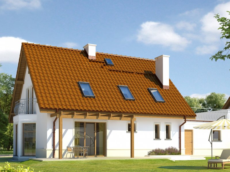 Budynek zaprojektowano w technologii murowej ze stropem gęstożebrowym. Schody wewnętrzne drewniane. Dach dwuspadowy o konstrukcji drewnianej pokryto dachówką ceramiczną. Elewacje i cokół wykonano z tynku strukturalnego. Stolarka okienna drewniana lub PCV. Rolety zewnętrzne naokienne w systemie CleverBox firmy BeClever.