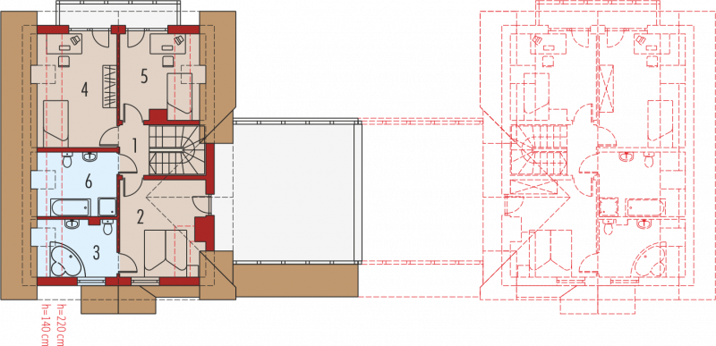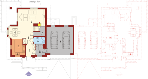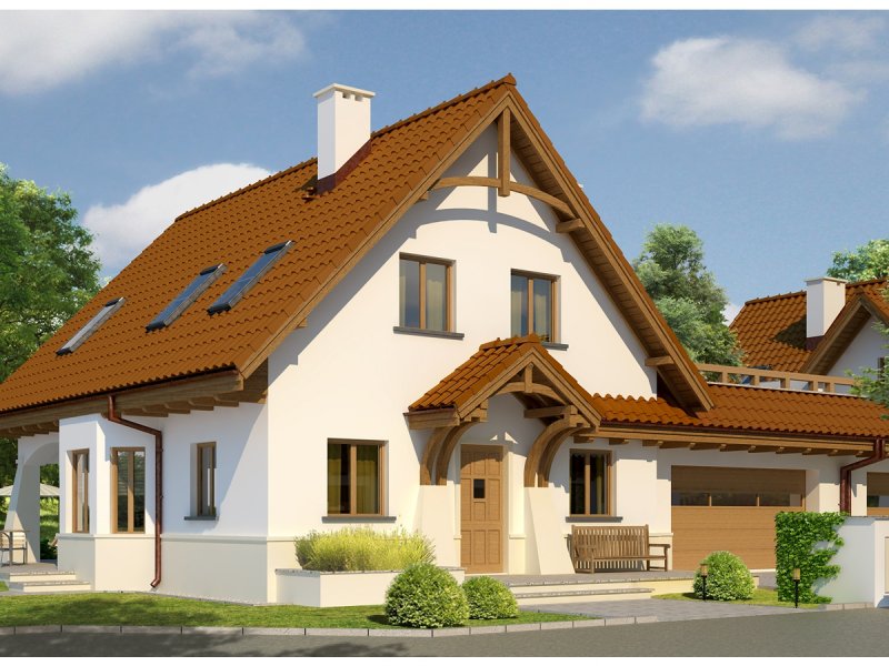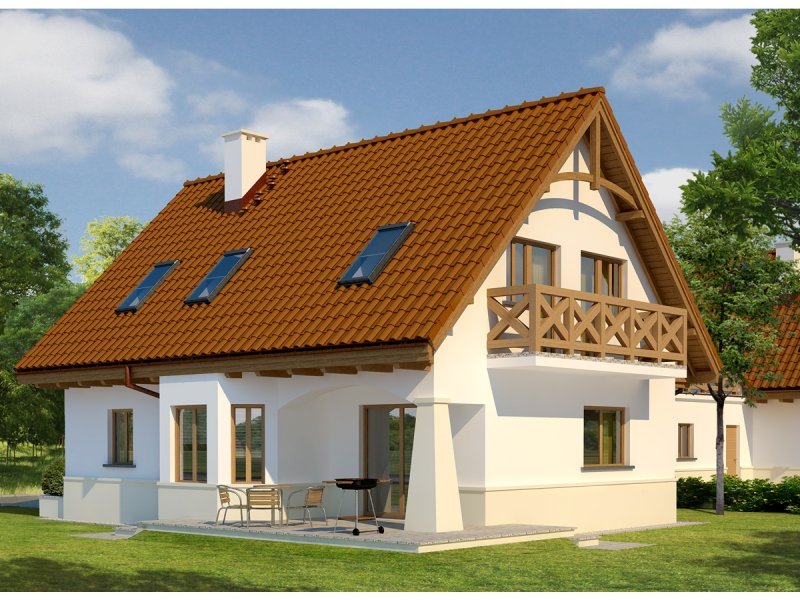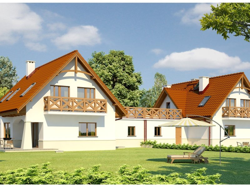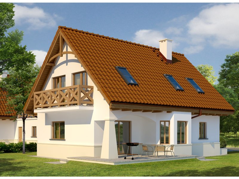 Dom parterowy z użytkowym poddaszem, w zabudowie bliźniaczej, niepodpiwniczony, z garażem dwustanowiskowym, przeznaczony dla 4-5-osobowej rodziny. Parter to strefa dzienna, na którą składa się obszerny salon z kominkiem, jadalnia w efektownym wykuszu, wygodna kuchnia, łazienka oraz pomieszczenie gospodarcze. Zaplanowany układ funkcjonalny przewiduje możliwość przejścia z garażu przez pomieszczenie gospodarcze do części mieszkalnej. Strefa nocna znajduje się na poddaszu, w jej skład wchodzą trzy sypialnie, w tym jedna z osobną łazienką oraz dodatkowa, przestronna łazienka. Nad poddaszem znajduje się strych, dostępny przez wyłaz w stropie. Karolinka to doskonała propozycja dla rodziny, która ceni funkcjonalne przestrzenie i stylowe wykończenie elewacji. Karolinkę wyróżniają komfortowe wnętrza i niezwykle funkcjonalny układ domu. Istnieje możliwość podpiwniczenia budynku.