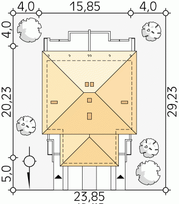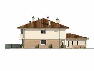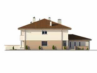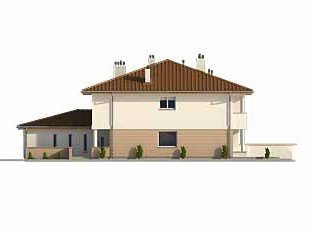 Ściany: 2-warstwowe - pustak ceramiczny + styropian, Stropy: żelbetowe, wylewane, Dach: dachówka ceramiczna, kąt nachylenia 20°