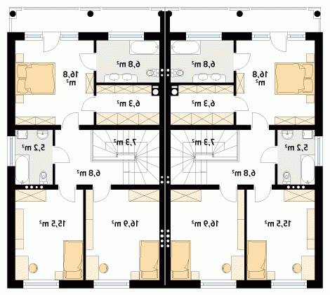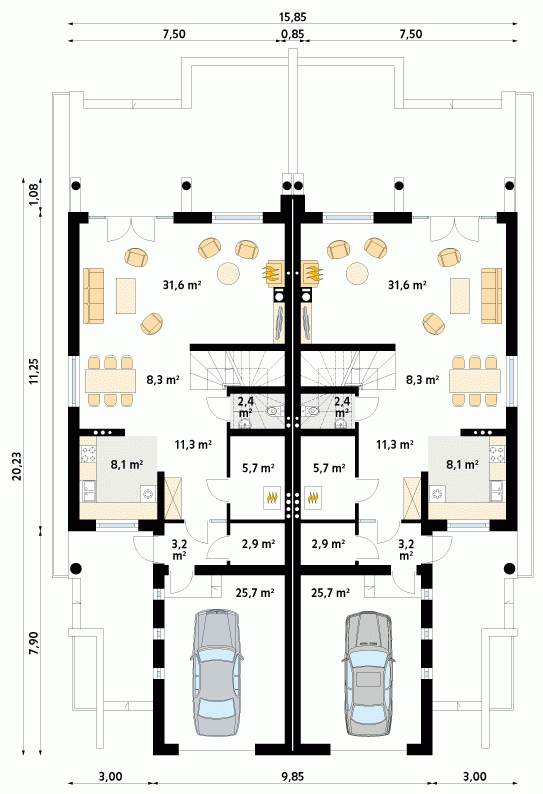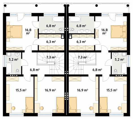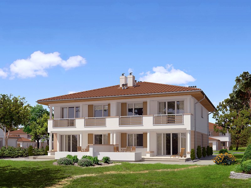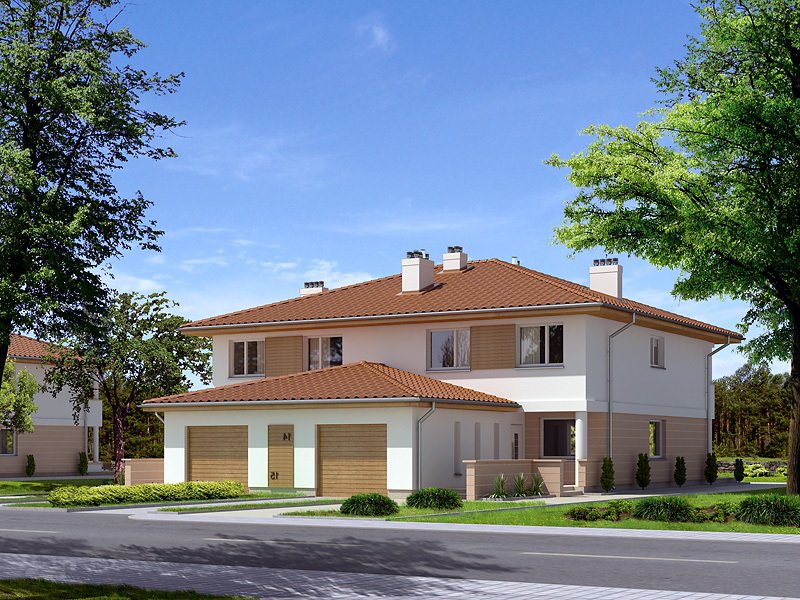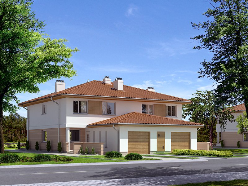 Budynek mieszkalny w zabudowie bliźniaczej, dwukondygnacyjny, z garażem jednostanowiskowym. Na parterze zaprojektowano przestronną przestrzeń łączącą w sobie pokój dzienny, jadalnię oraz kuchnię. Na piętrze zaprojektowano trzy sypialnie, w tym jedna z własną łazienką i garderobą. Dzięki dwóm pełnym kondygnacjom istnieje możliwość łatwej aranżacji pomieszczeń.