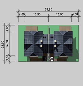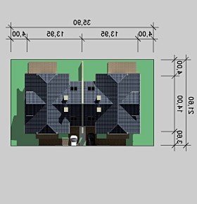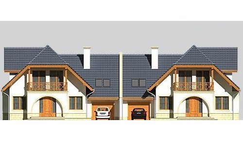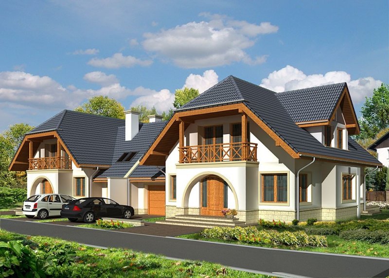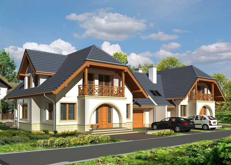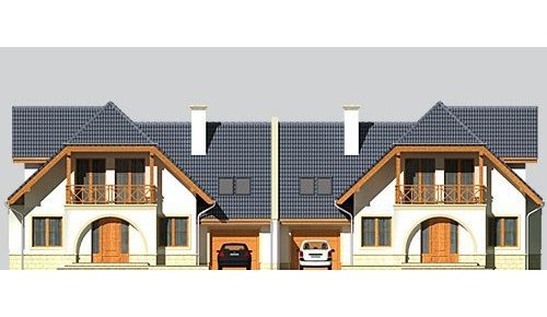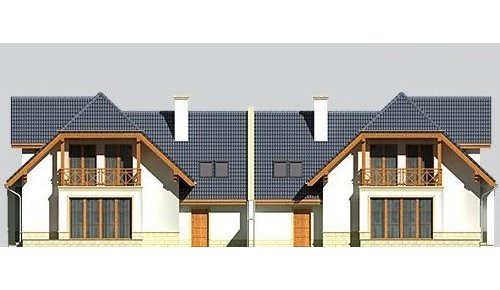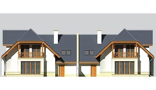Dom jednorodzinny, parterowy, w zabudowie bliźniaczej, z użytkowym poddaszem i jednostanowiskowym garażem.