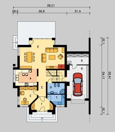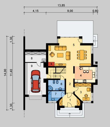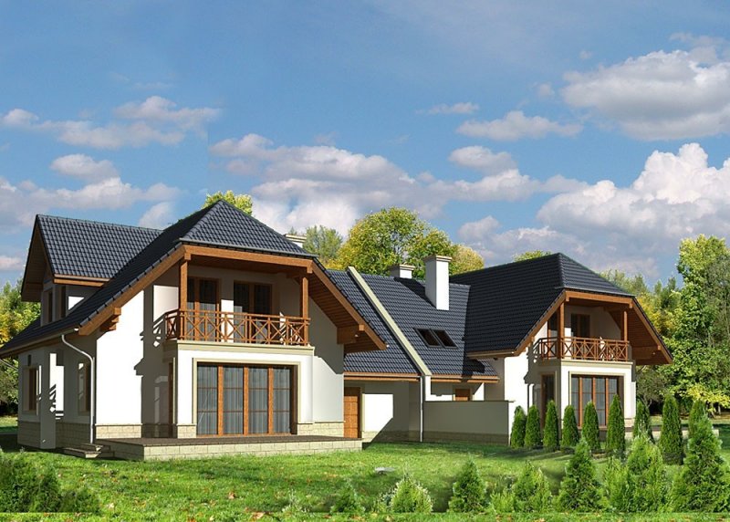 - Elewacje: wykończone tynkiem silikonowym, cokoły obłożone płytkami kamiennymi