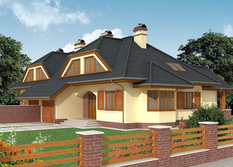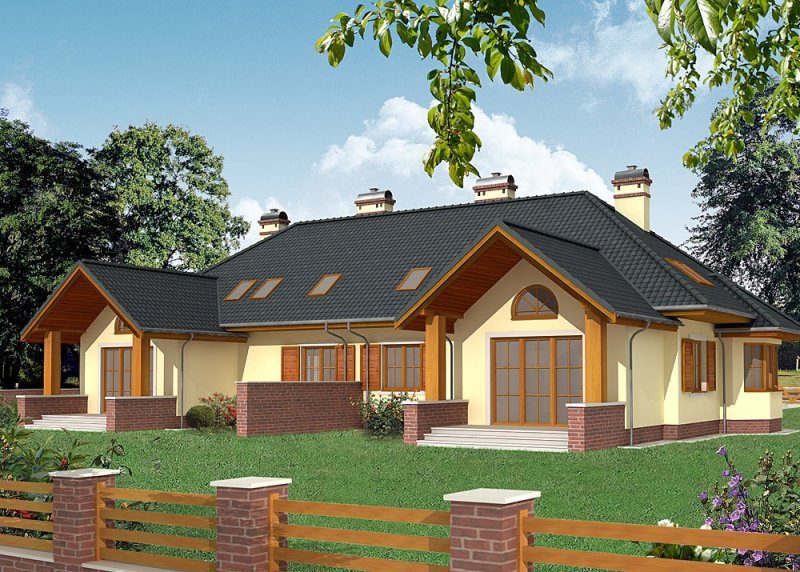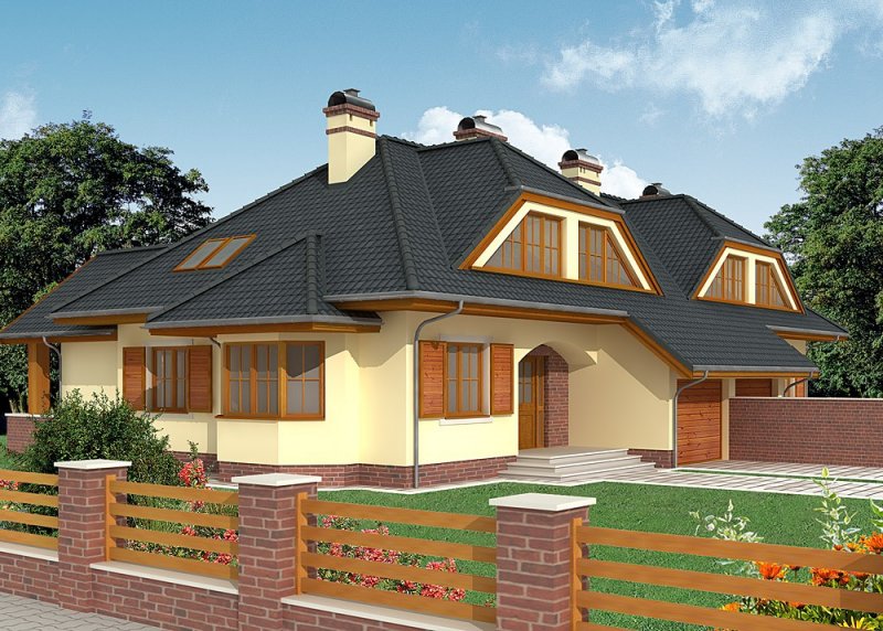 - Elewacje: wykończone tynkiem mineralnym, cokoły obłożone klinkierem