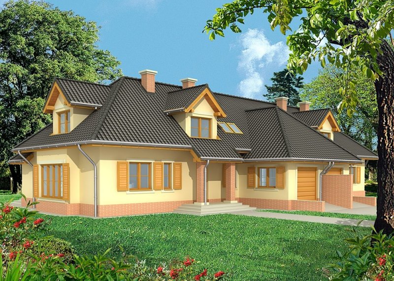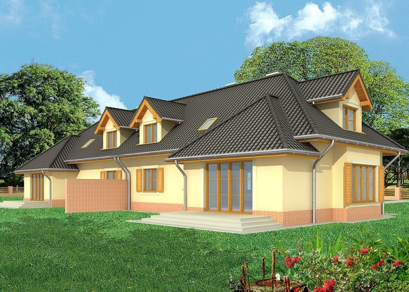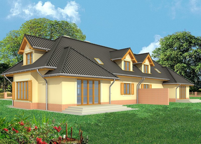 - Elewacje: wykończone tynkiem silikonowym. cokoły obłożone kamieniem naturalnym