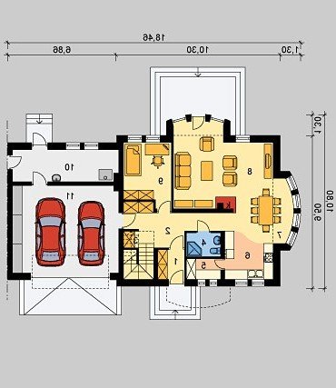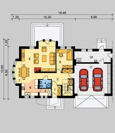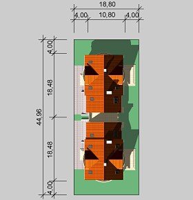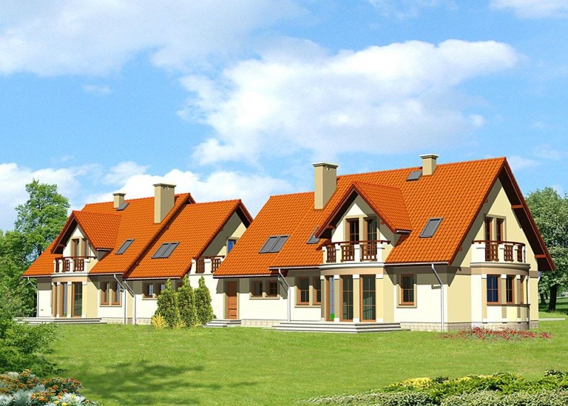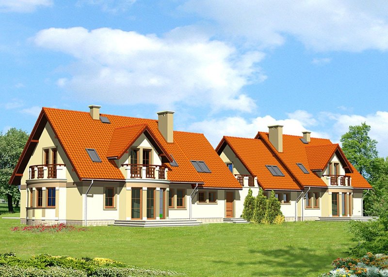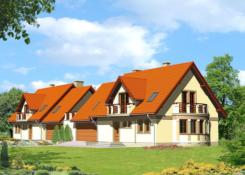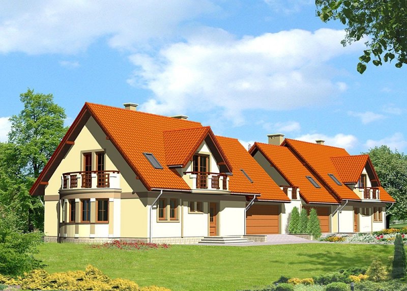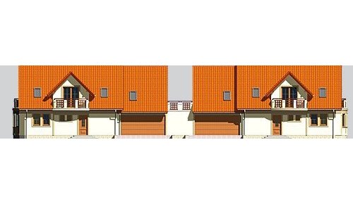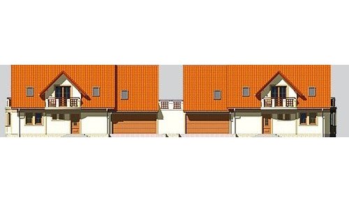 Dom parterowy, w zabudowie bliźniaczej z poddaszem użytkowym i dwustanowiskowym garażem.