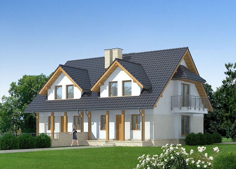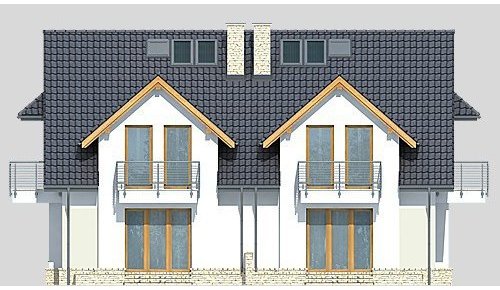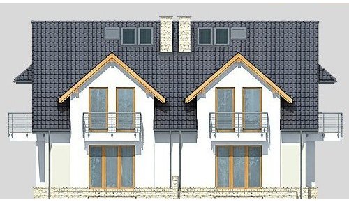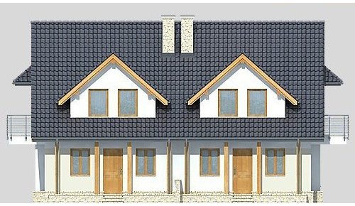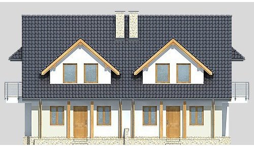 Dom jednorodzinny parterowy, niepodpiwniczony, z poddaszem użytkowym, w zabudowie bliźniaczej.