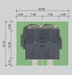 - Min. wymiary działki 19.18x22.80 m