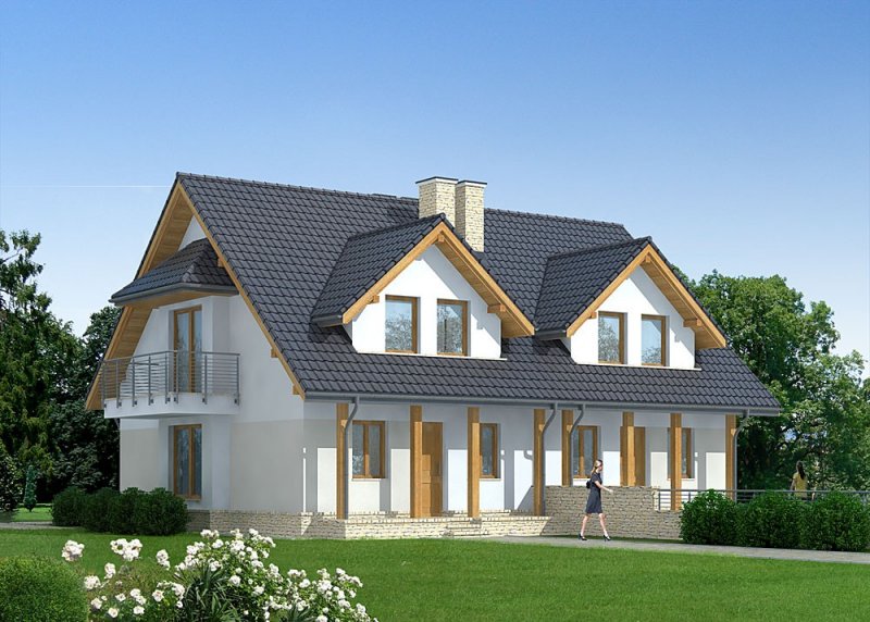 - Pokrycie dachu: dachówka ceramiczna Koramic Actua firmy Wienerberger