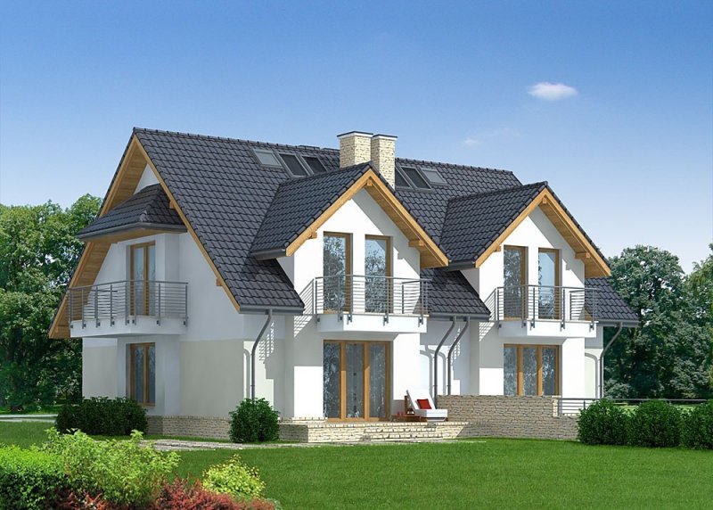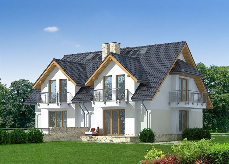 - Elewacje: tynk silikonowy, cokół obłożony kamieniem naturalnym