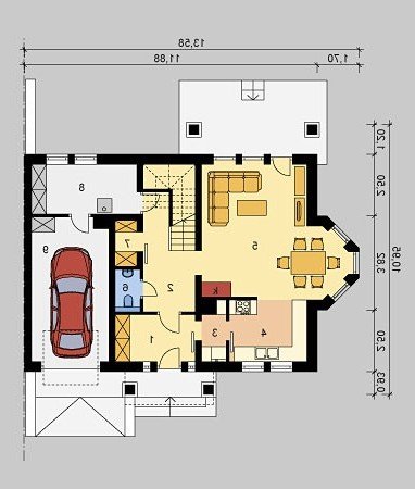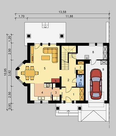 - Elewacje: wykończone tynkiem silikonowym, cokoły wykończone płytkami ceramicznymi