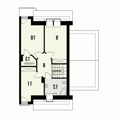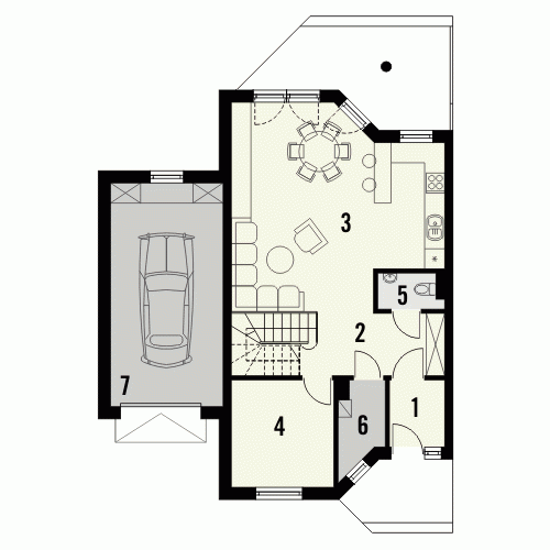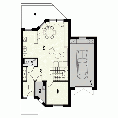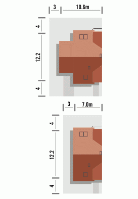 Budynek blźniaczy niepodpiwniczony piętrowy z garażem jednostanowiskowym lub bez. Na parterze obok salonu z kuchnią zaprojektowano pomieszczenie gospodarcze, wc i dodatkowy pokój. Na piętrze pod dwuspadowym dachem zaprojektowano 3 sypialnie, w tym jedną z garderobą oraz łazienkę. Dokumentacja dostępna również w odbiciu lustrzanym. Dostępna wersja bez garażu. Budynek możliwy do zrealizowania jako segment skrajny szeregu Malta.