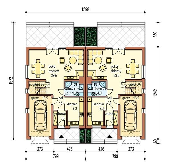 Zaletą Malwiny jest to że może być wybudowana na wąskiej działce, niezależnie od typu zabudowy, jaka zostanie wybrana przez Inwestora.
