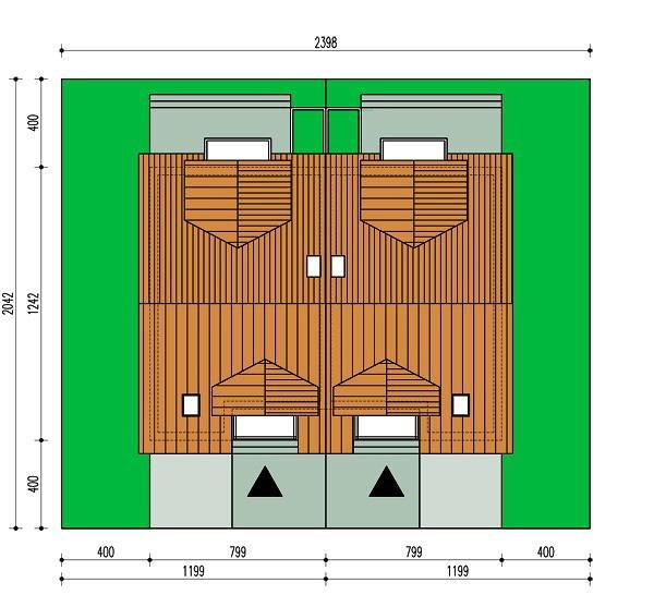 Malwina jest niedużym niepodpiwniczonym domem w zabudowie bliźniaczej z użytkowym poddaszem i wbudowanym garażem, przeznaczonym dla 4-5 osobowej rodziny. Dom ma zwartą bryłę - na planie prostokąta z wysuniętym garażem. Małe skomplikowanie bryły i przekrycie dwuspadowym dachem sprawia, że jest tani i łatwy w realizacji. Malwina może być zrealizowana również w zabudowie wolno stojącej lub szeregowej.