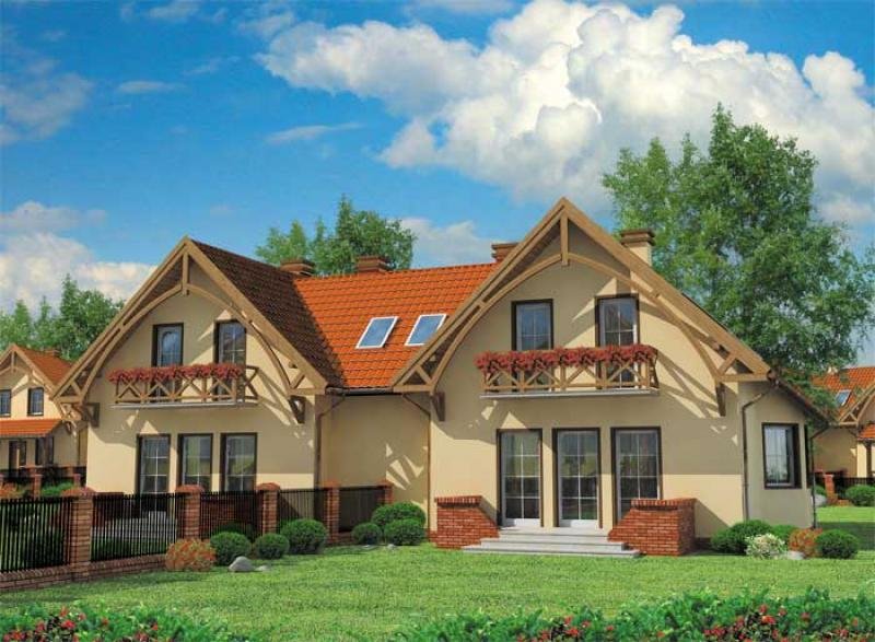 "Sparta" Nieregularne kształty i boczne krągłości sprawiają, że Sparta wychodzi poza standard prostych, kwadratowych konstrukcji. Od frontu maluje się wykwintny widok na tle którego wyróżnia się niewielki ganek; z tyłu natomiast na uwagę zasługuje szklane trio (drzwi + 2 okna) wprowadzające do wnętrza domu dużą ilość światła. Sercem bliźniaka oraz centrum domowego ogniska są salon, kuchnia i jadalnia, które tętnią życiem każdego popołudnia, gdy gromadzi się w nich cała rodzina. Gdy dzień dobiegnie końca wszyscy domownicy mogą udać się na piętro do swych sypialni, aby zasnąć w poczuciu radości, komfortu i bezpieczeństwa.