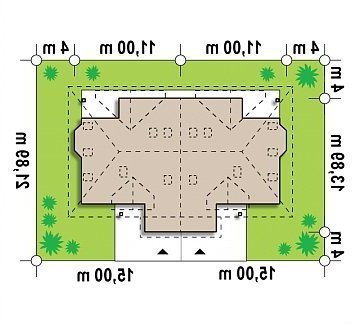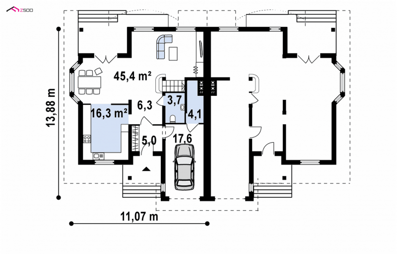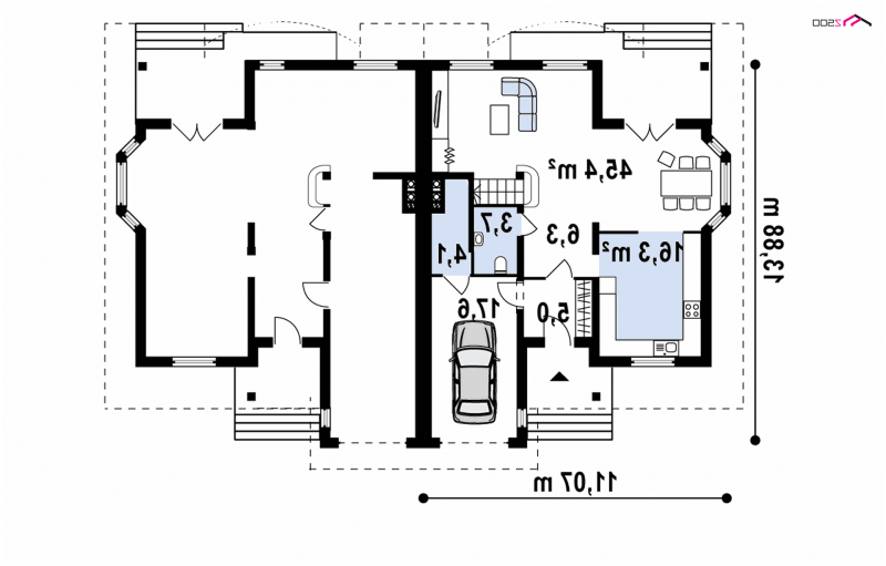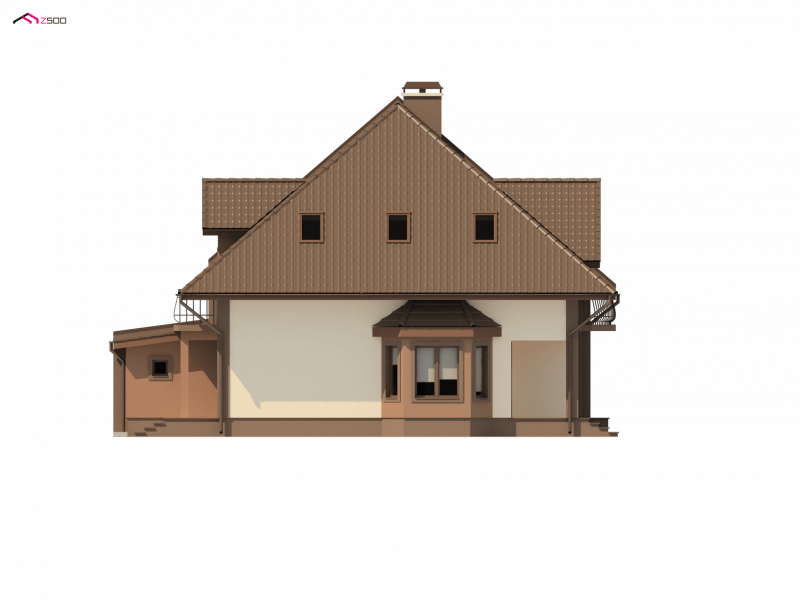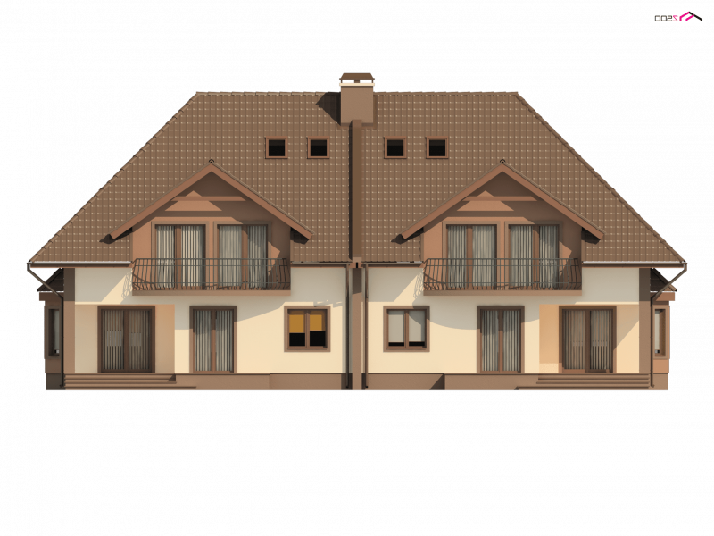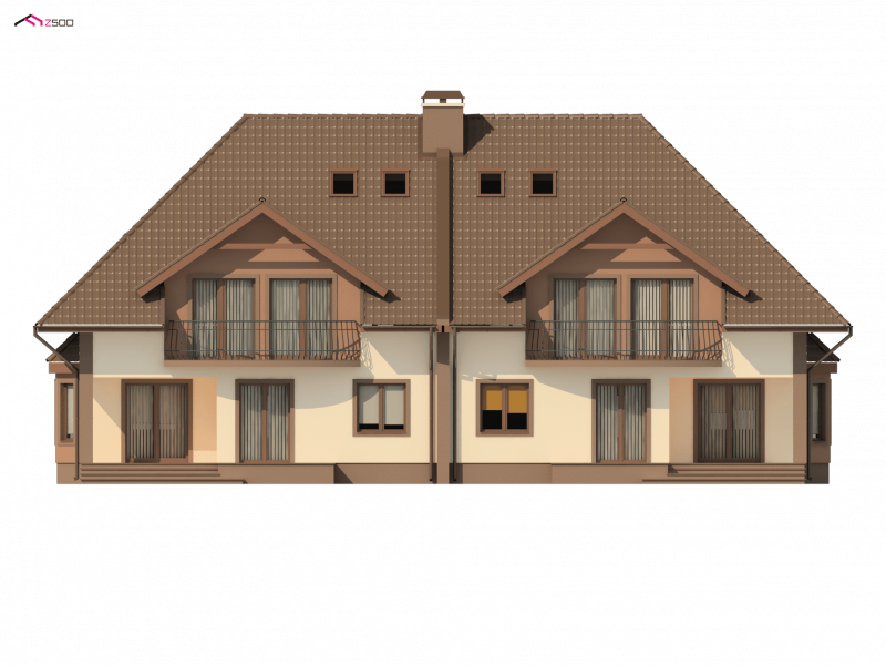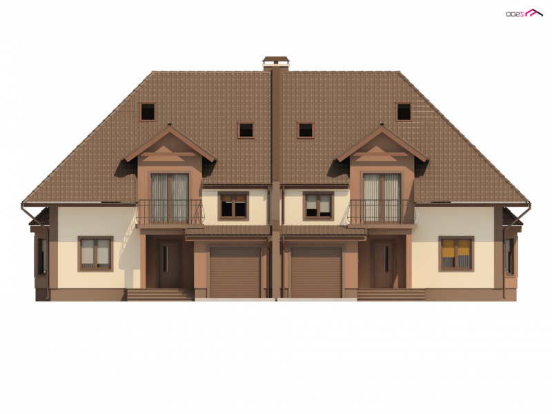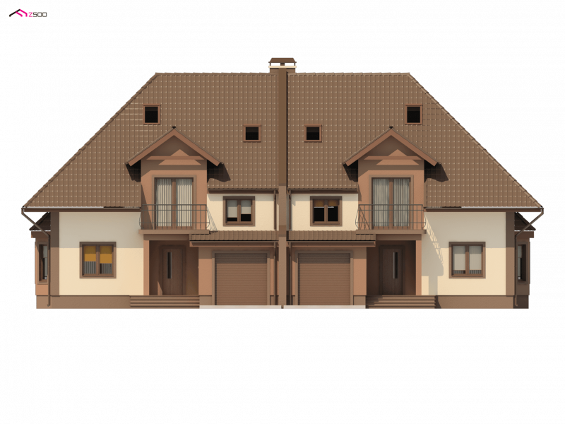 ZB1 to projekt w zabudowie bliźniaczej, który dzięki wbudowanemu w bryłę garażowi, zmieści się na stosunkowo wąskiej działce. Ciekawym, urozmaicającym bryłę elementem są lukarny z balkonami, zaprojektowane zarówno od frontu, jak i od strony ogrodu.