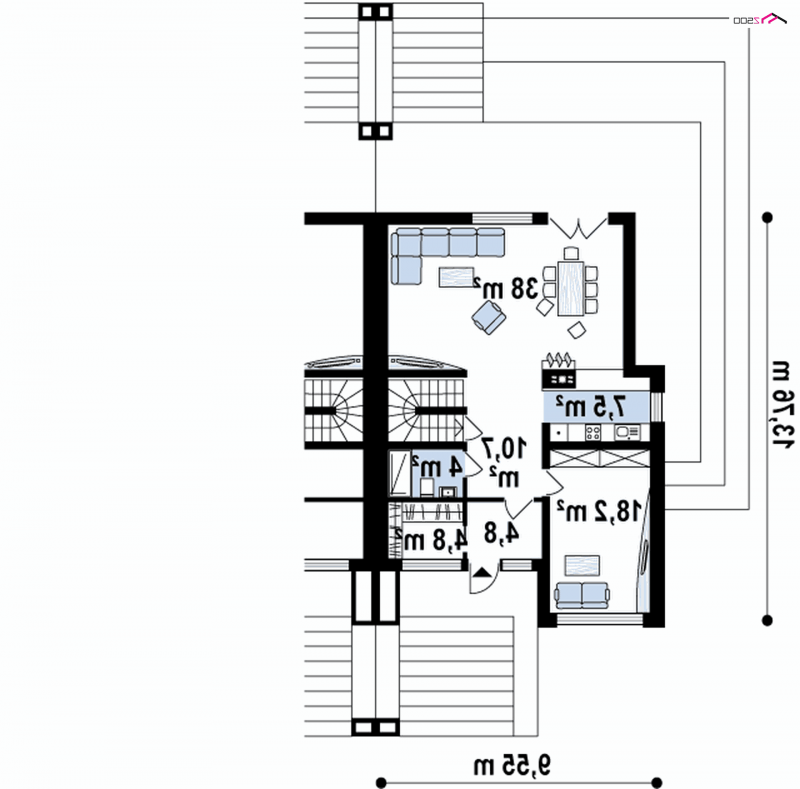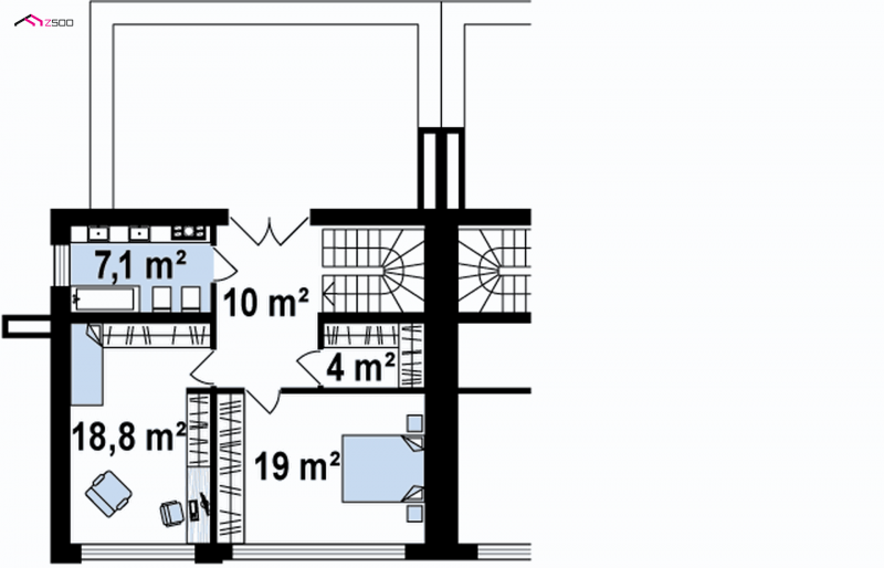Brat bliźniak Zb19 został zaprojektowany w celu budowy szeregowej. Również jest podpiwniczony, więc można pomieszczenie piwniczne wykorzystać wedle własnych potrzeb. Posiada 2 stanowiskowy garaż, zadaszone wejście, kuchnie połączoną z jadalnią, kominek, sypialnię z łazienką i garderobą.