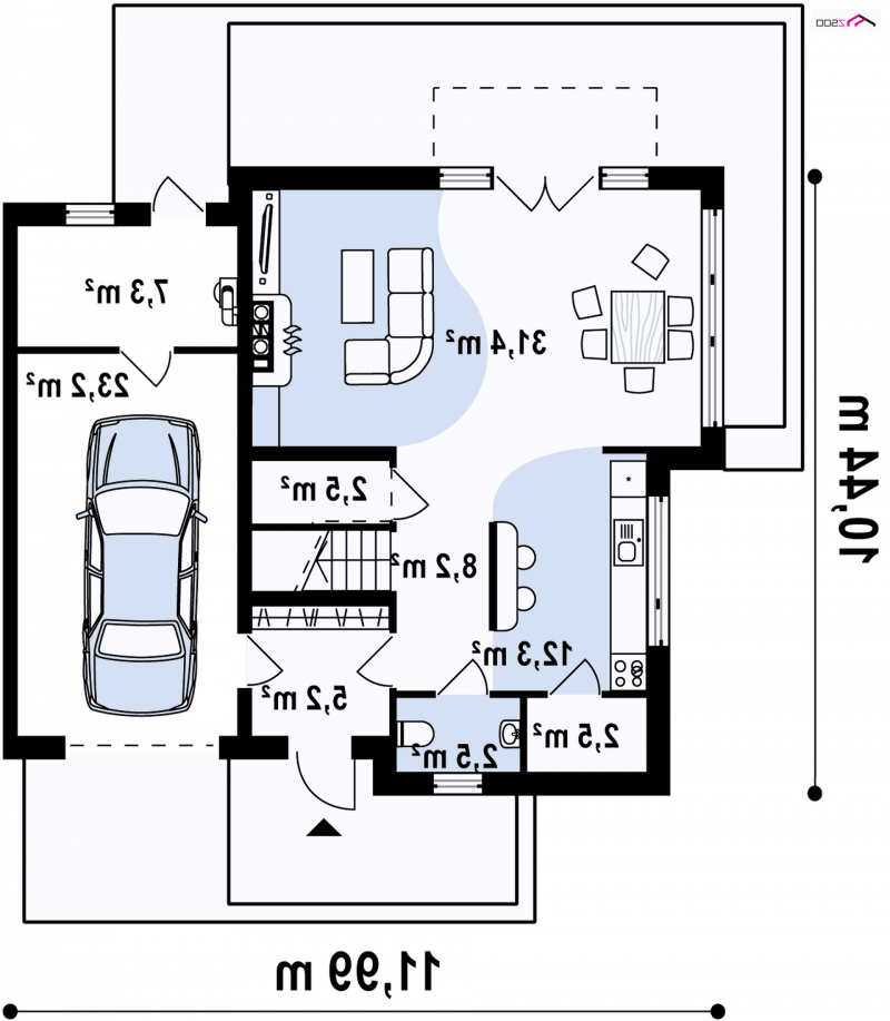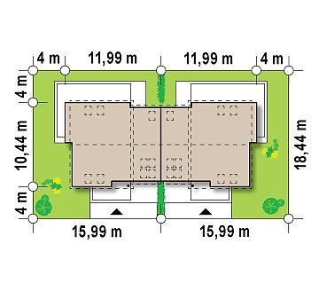 - Min. wymiary działki 18.44x18.99 m