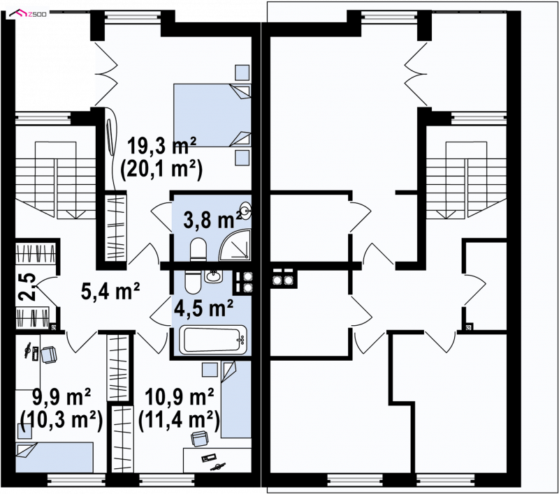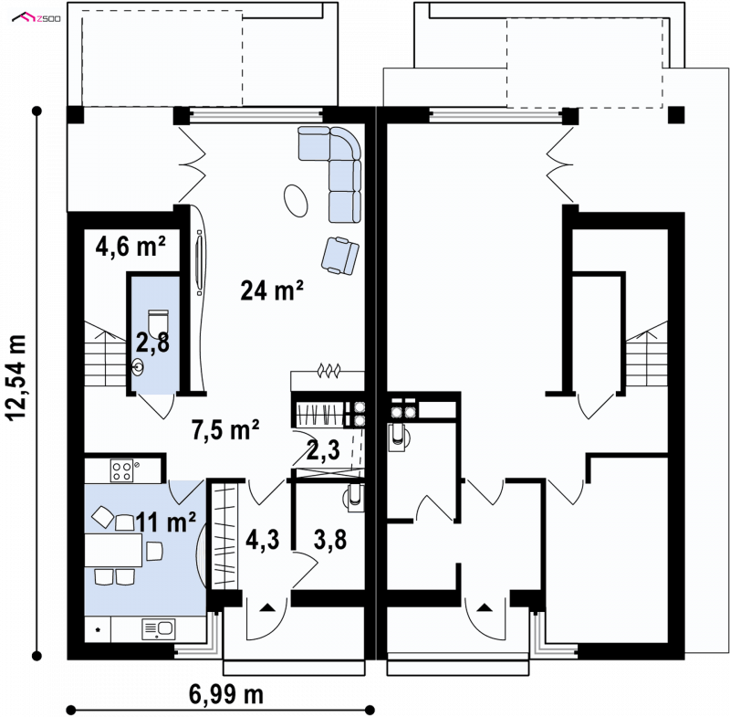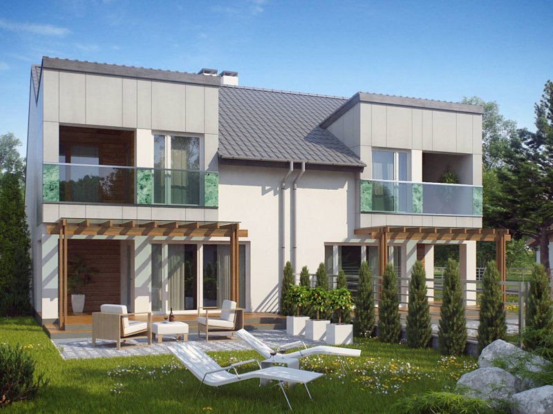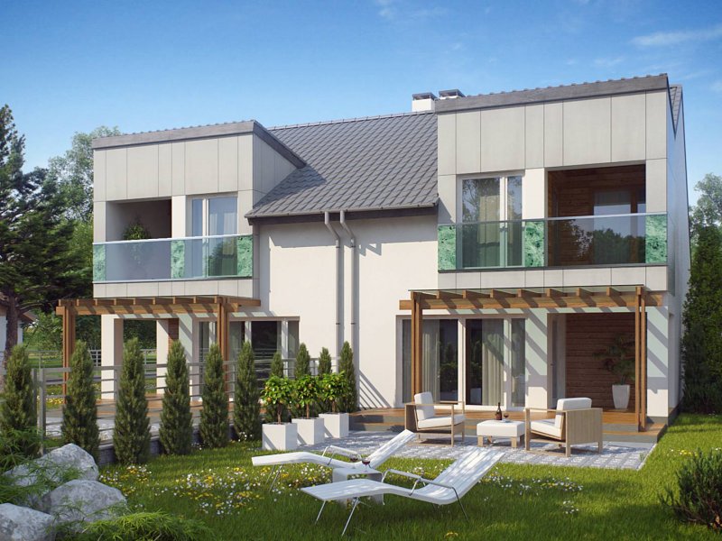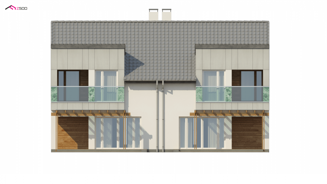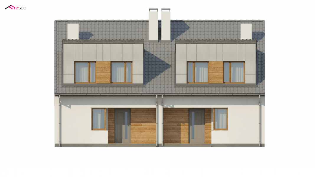 Zb7 to funkcjonalny i niezwykle atrakcyjny projekt domu. Prosta bryła przekryta dachem dwuspadowym. Jasne barwy ścian oraz okładzina elewacyjna harmonijnie współgrają z popielatą blachodachówką.