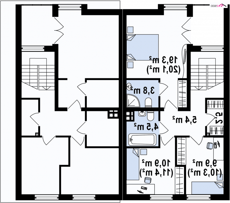Niewątpliwą zaletą projektu jest, wygodny układ funkcjonalny i ustawny salon z kominkiem. Zadaszony taras to idealne miejsce na odpoczynek w otoczeniu pięknego ogrodu. funkcjonalne wymiary warunkują komfort i wygodę użytkowania. Piętro stanowi część nocną domu. Są tu aż trzy przestronne, wygodne sypialnie. Każda z nich posiada własną funkcjonalną garderobę. Dodatkowymi atrakcjami pokoi są m.in. uroczy balkonik i prywatna łazienka.